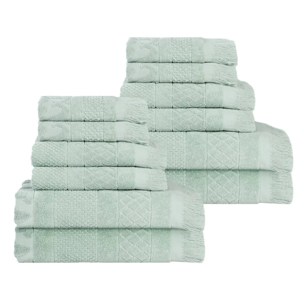 Superior Rolla Cotton Geometric Jacquard Plush Soft 12 Piece Towel Set - Sage