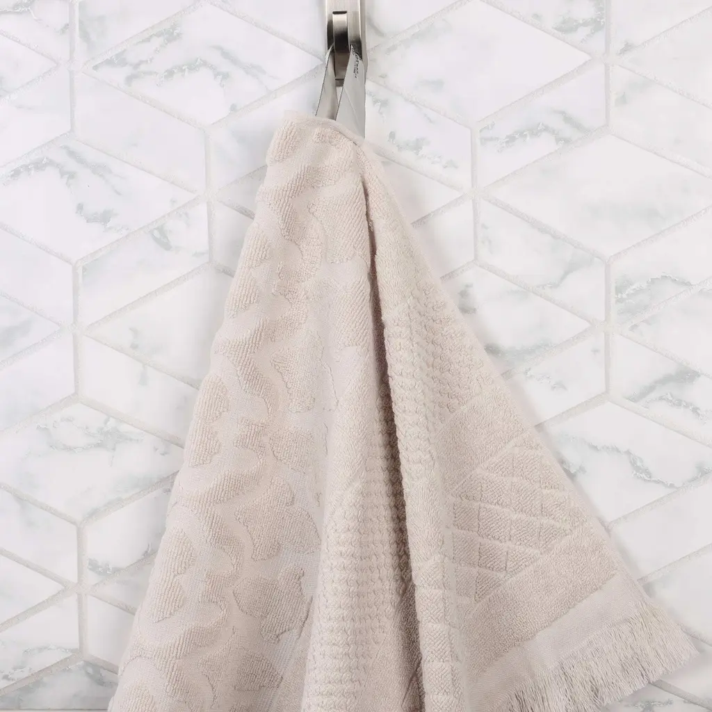 Superior Rolla Cotton Geometric Jacquard Plush Soft 12 Piece Towel Set - Silver