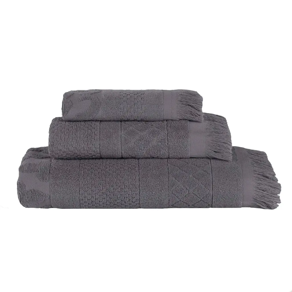 Superior Rolla Cotton Geometric Jacquard Plush Soft 3 Piece Towel Set - Grey