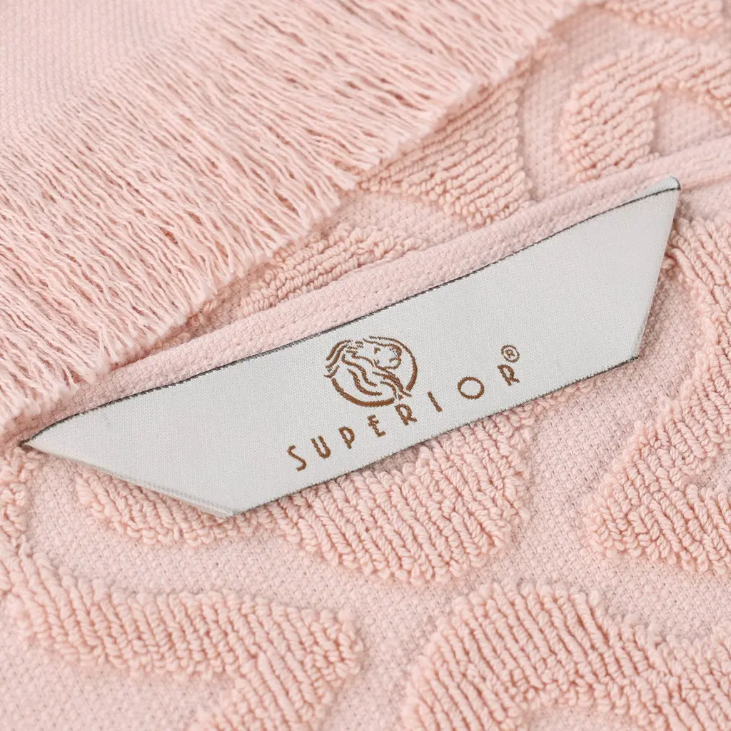 Superior Rolla Cotton Geometric Jacquard Plush Soft 8 Piece Towel Set - Peach