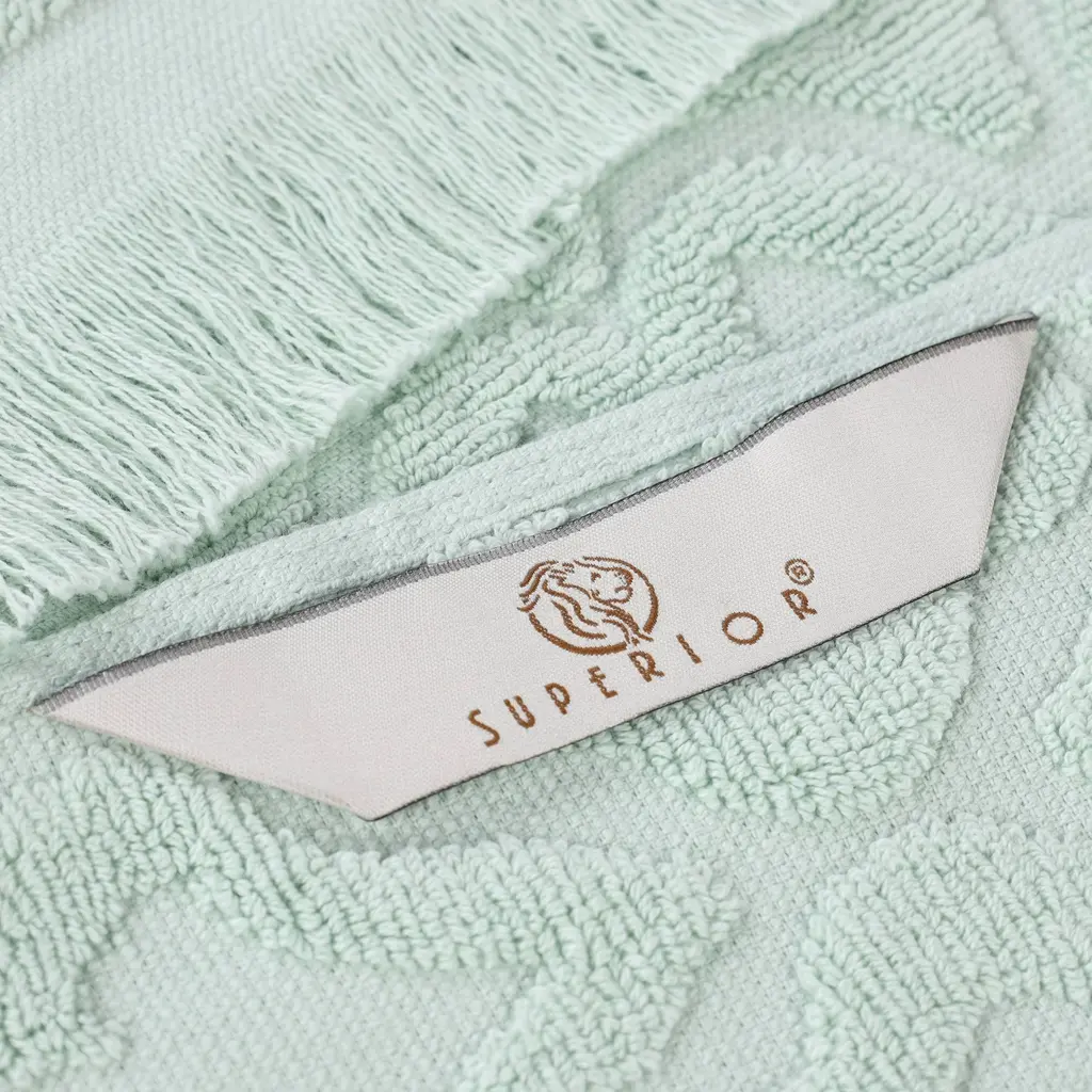 Superior Rolla Cotton Geometric Jacquard Plush Soft 8 Piece Towel Set - Sage