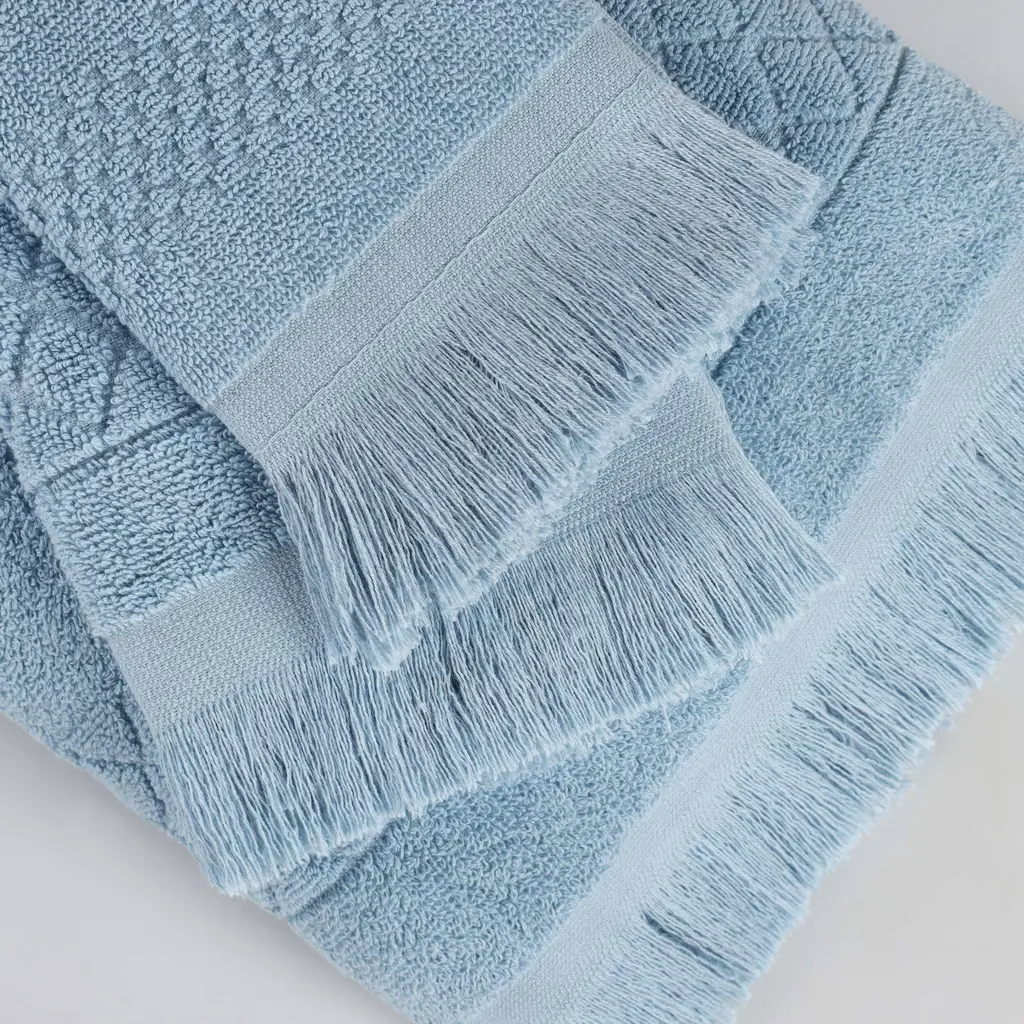 Superior Rolla Cotton Geometric Jacquard Plush Soft Bath Towel Set Of 3 - Blue