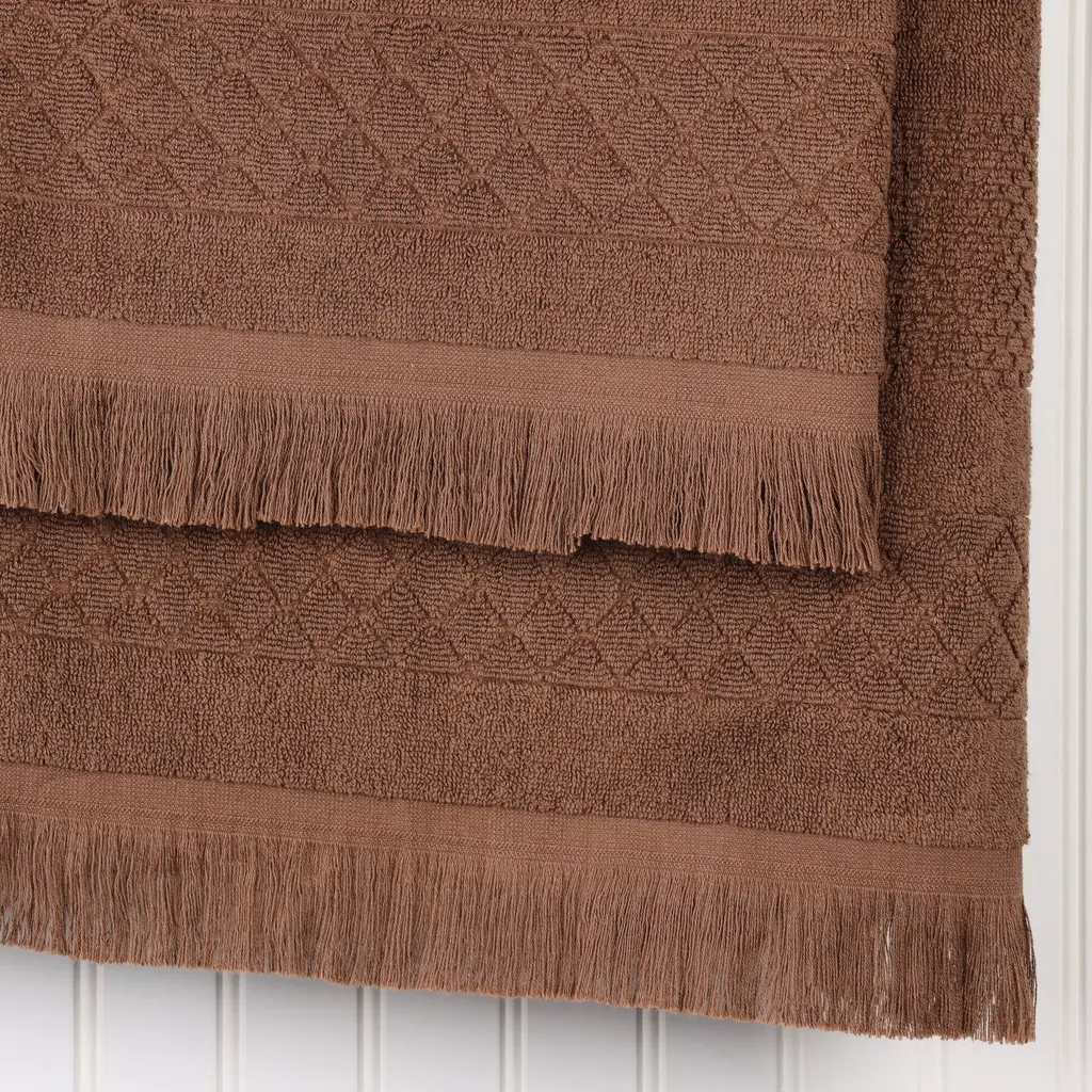 Superior Rolla Cotton Geometric Jacquard Plush Soft Bath Towel Set Of 3 - Chocolate