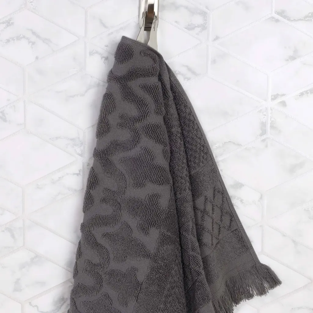 Superior Rolla Cotton Geometric Jacquard Plush Soft Bath Towel Set Of 3 - Grey
