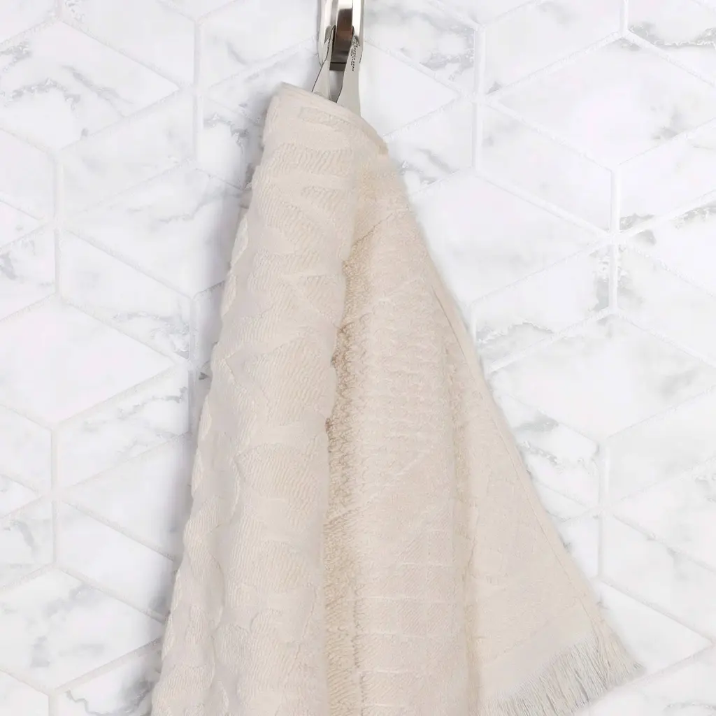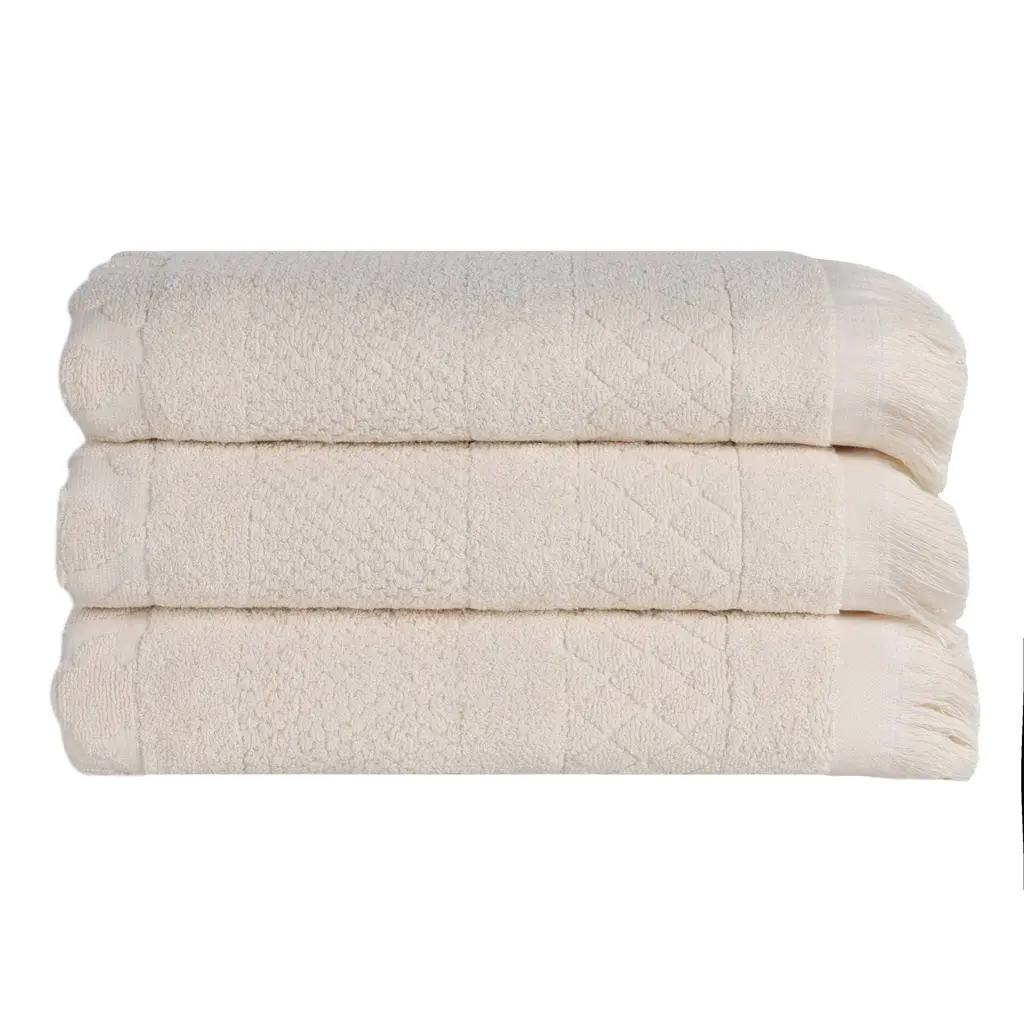 Superior Rolla Cotton Geometric Jacquard Plush Soft Bath Towel Set Of 3 - Ivory