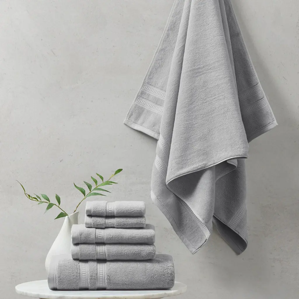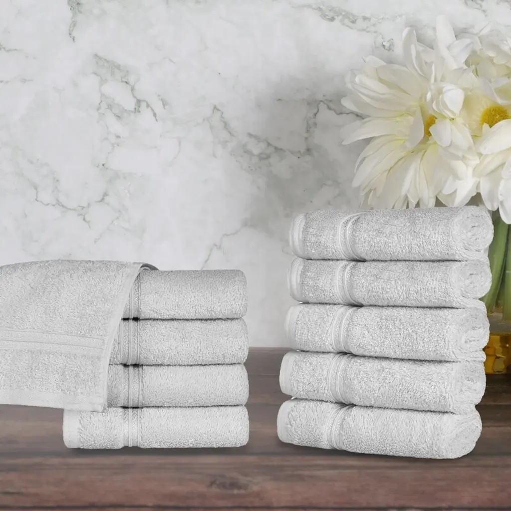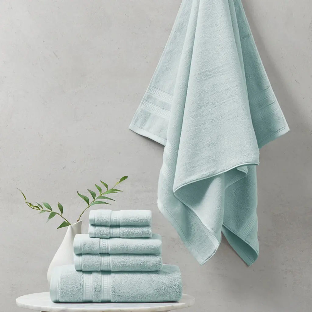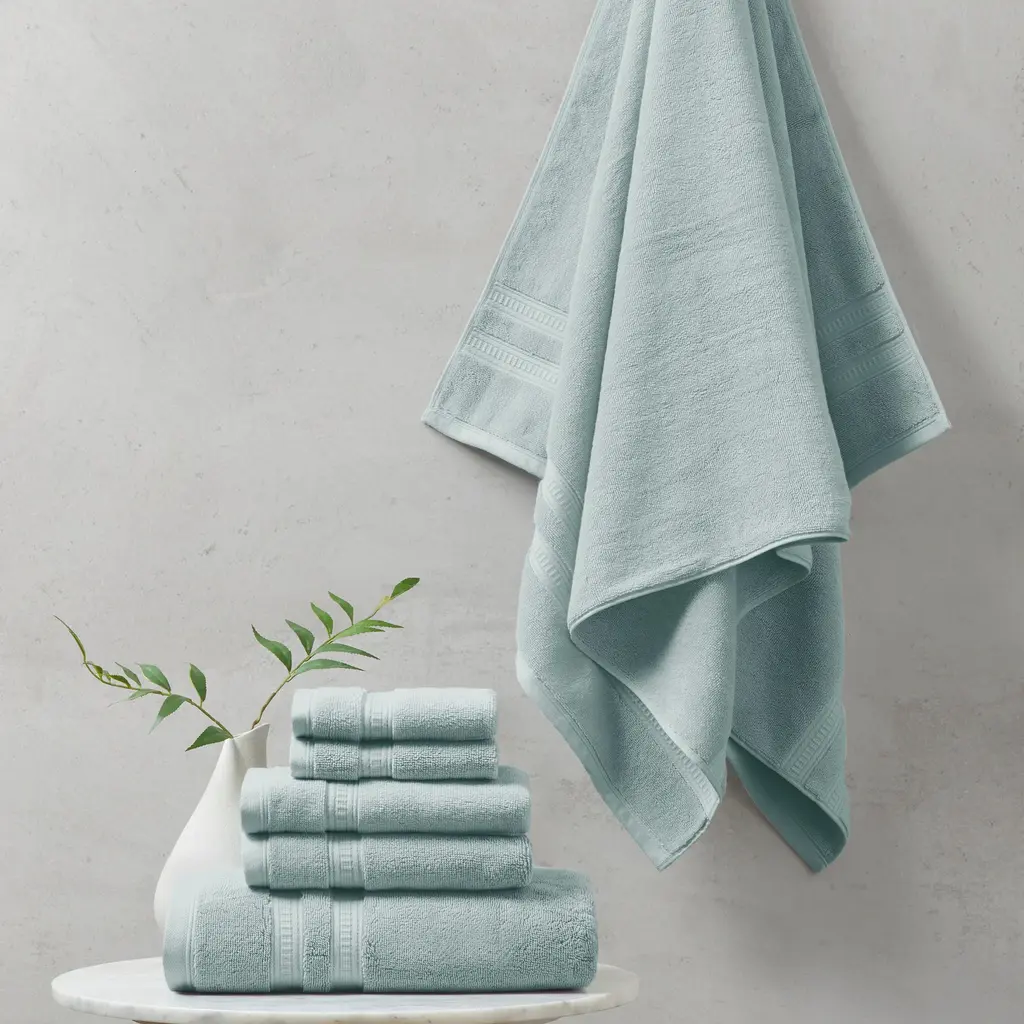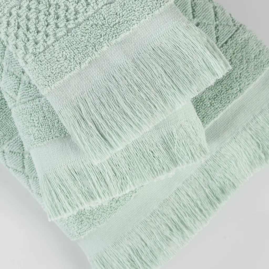 Escape into the the luxurious comfort of the Superior Rolla Cotton Geometric Bath Towel Set. Our fluffy cotton towels have a luxuriously soft feel and are naturally eco-friendly, ideal for people with sensitive skin. Featuring a unique geometric design with frayed edges, enjoy the absorbent feeling of these towels after every wash. The medium weight thickness of each towel is versatile and perfect for the bath, poolside, or at the beach. These towels are available in Sage, Peach, Chocolate, Silver, White, Ivory, Blue, Black, and Grey color options to match your bathroom decor style. This towel set includes; 3 bath towels to complete your bathroom collection. Features: