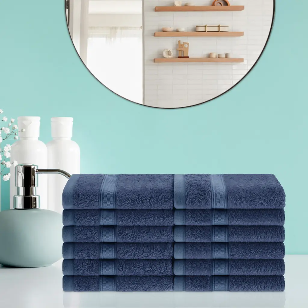 Superior Rolla Cotton Geometric Jacquard Plush Soft Hand Towel Set Of 6 - Blue