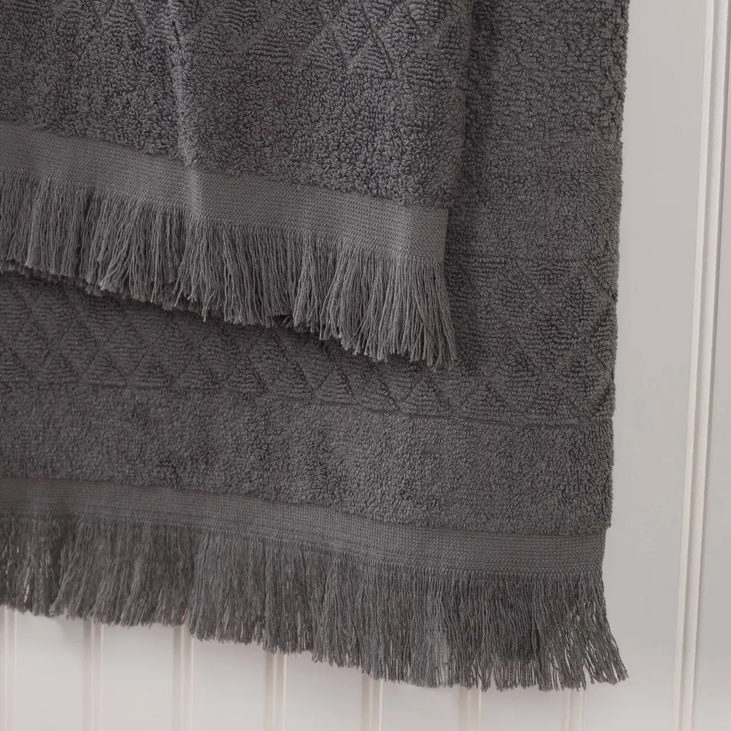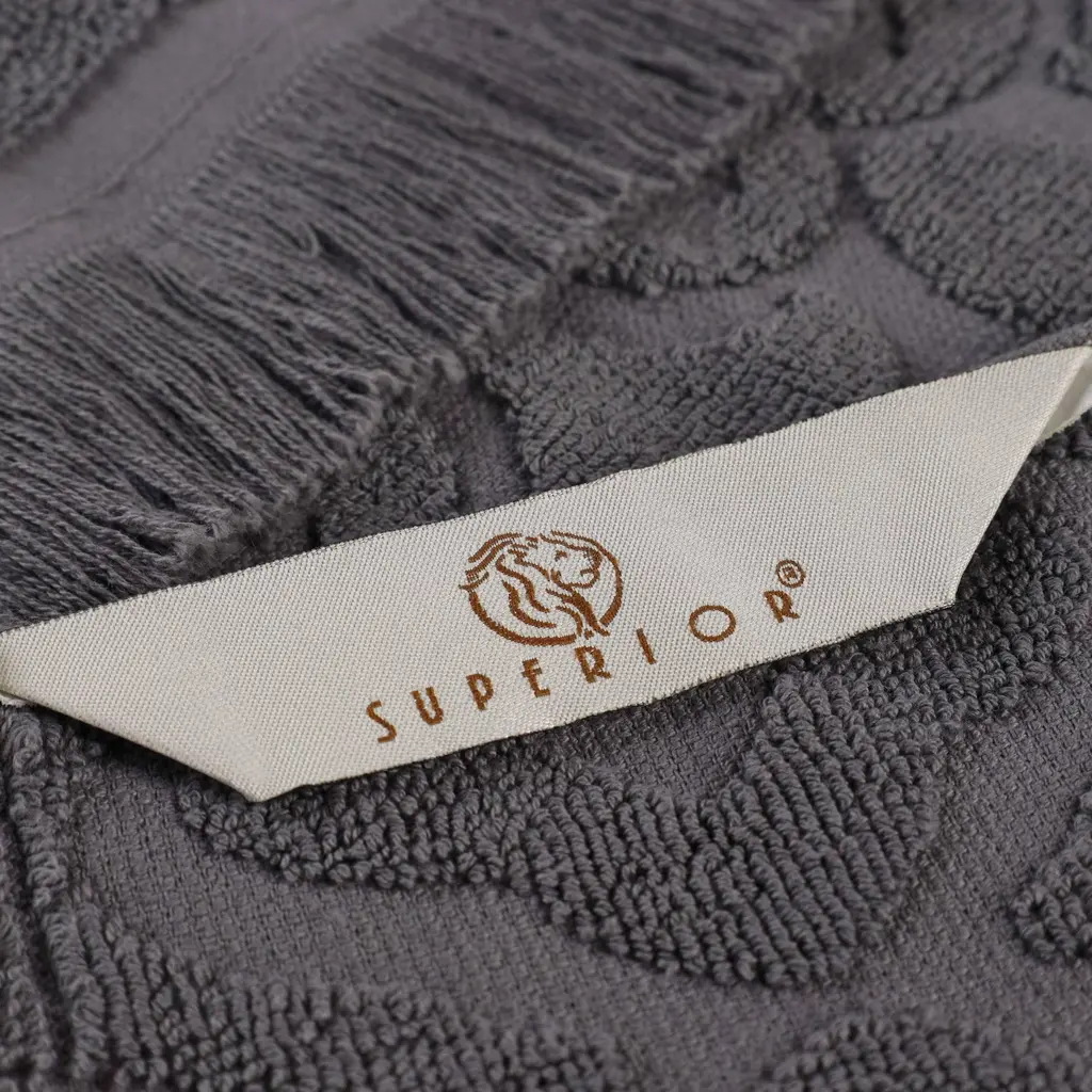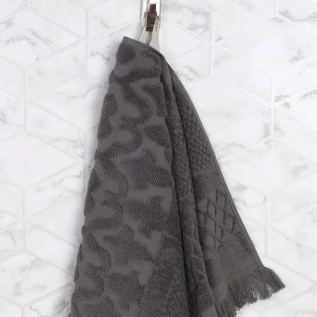 Superior Rolla Cotton Geometric Jacquard Plush Soft Hand Towel Set Of 6 - Grey