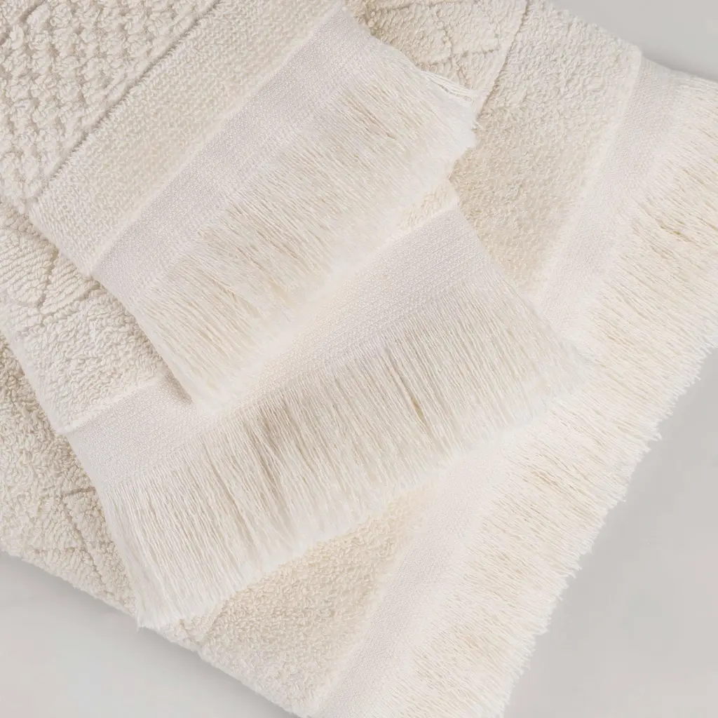 Superior Rolla Cotton Geometric Jacquard Plush Soft Hand Towel Set Of 6 - Ivory
