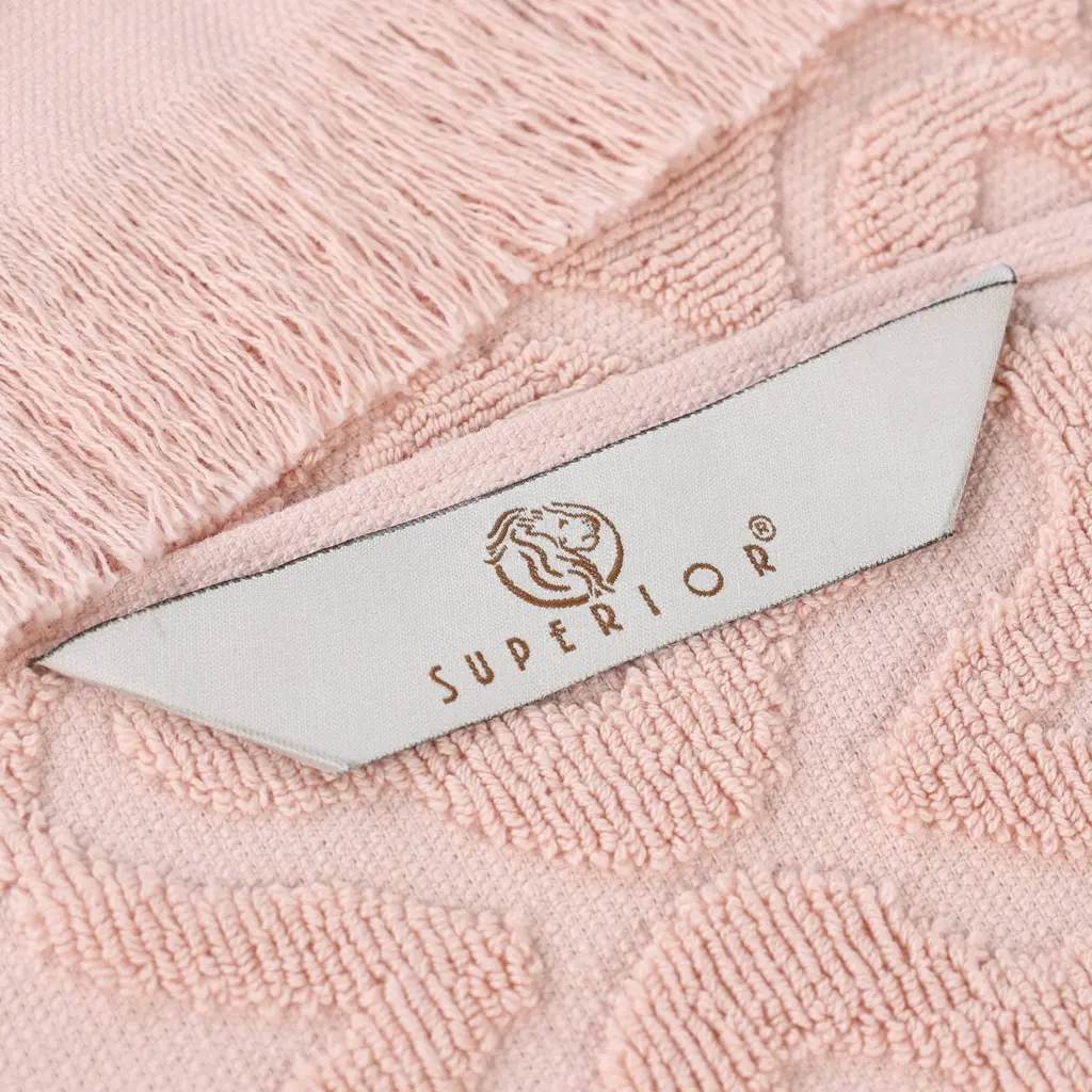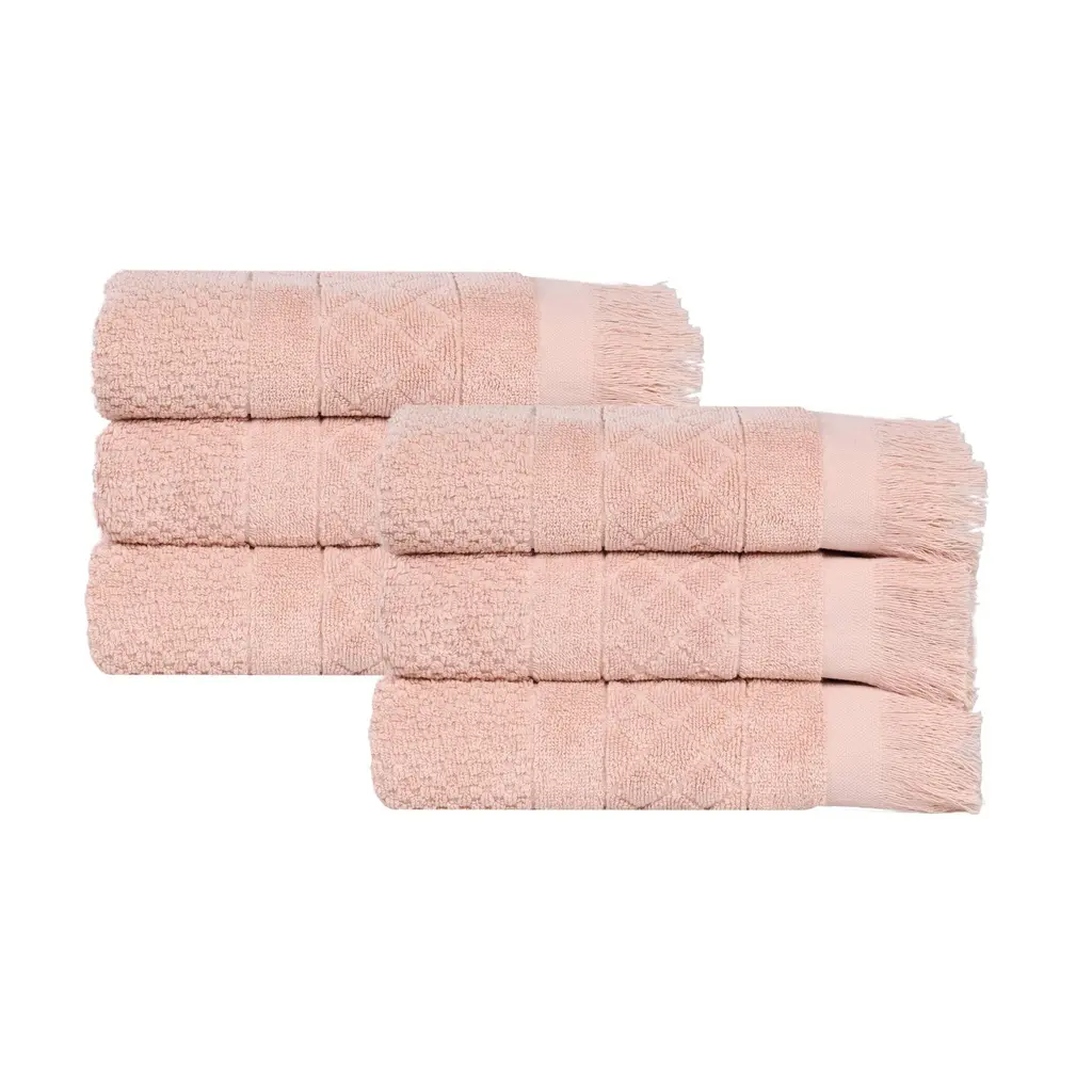 Superior Rolla Cotton Geometric Jacquard Plush Soft Hand Towel Set Of 6 - Peach