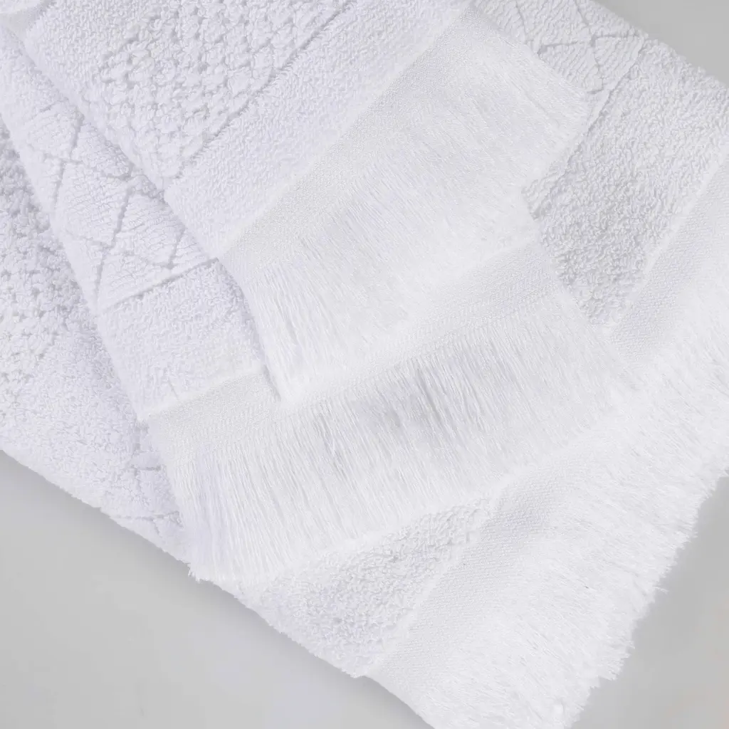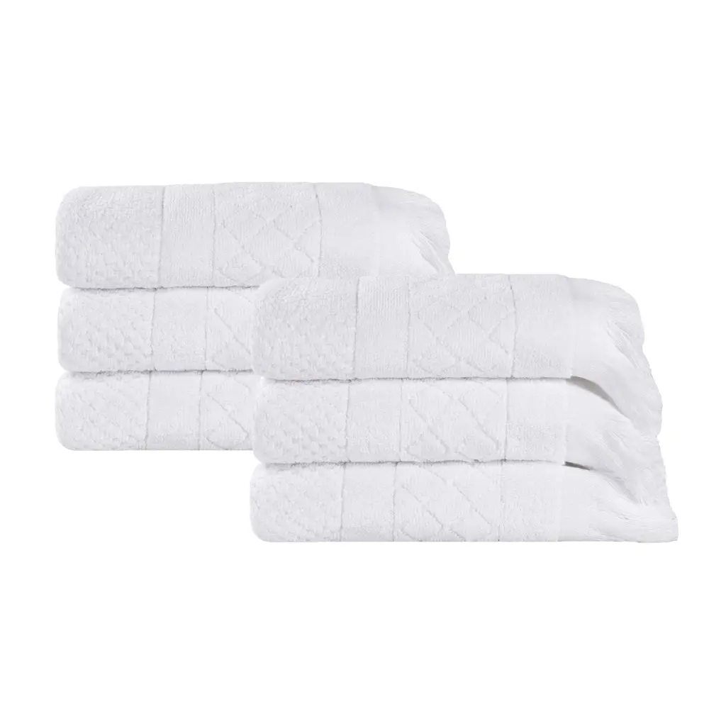 Superior Rolla Cotton Geometric Jacquard Plush Soft Hand Towel Set Of 6 - White