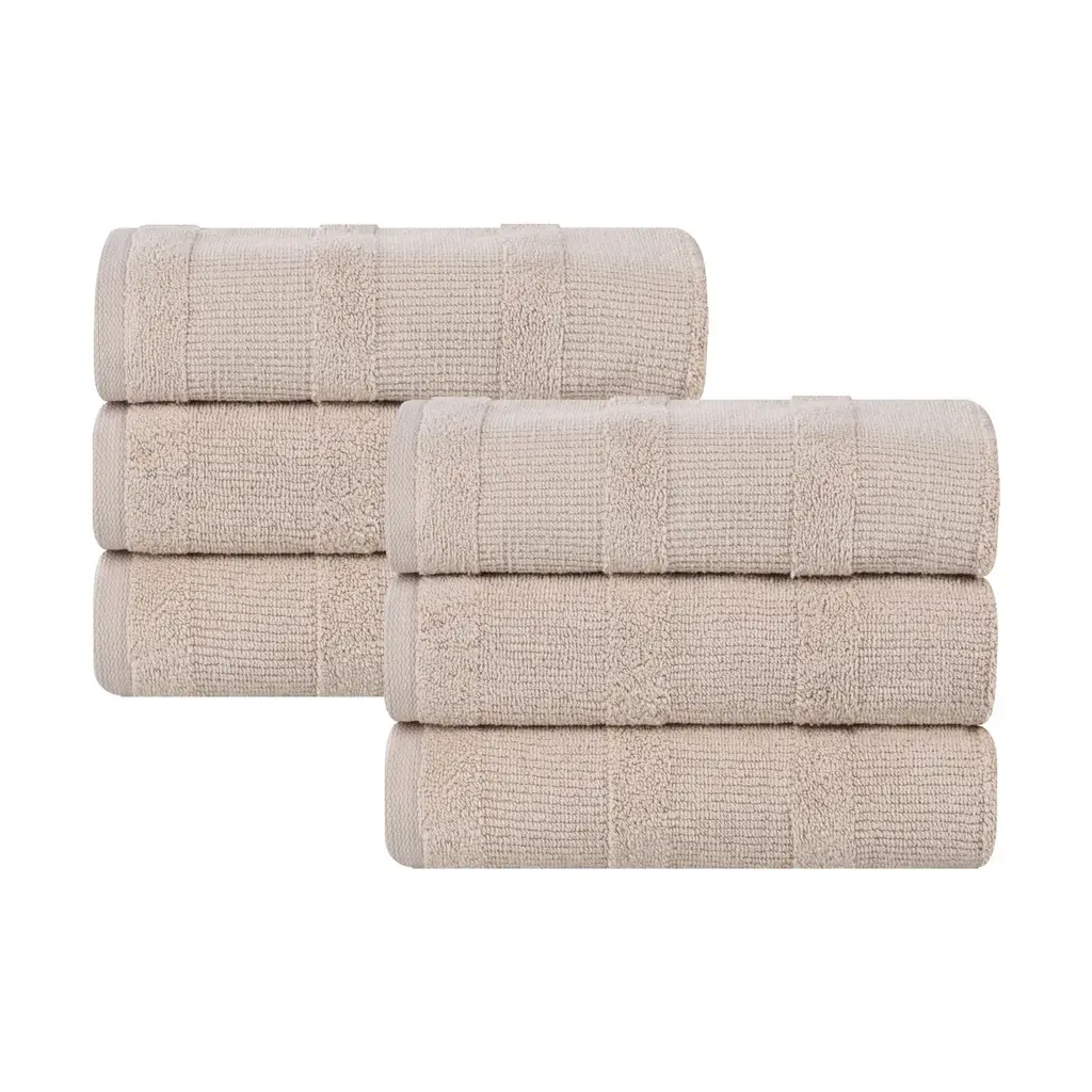Superior Roma Cotton Ribbed Soft Highly Absorbent Hand Towel Set Of 6 - Stone