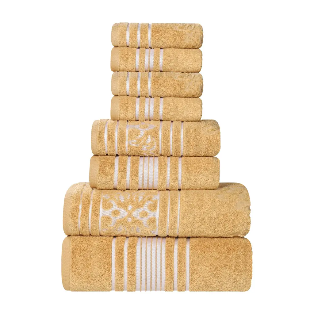 Superior Sadie Zero Twist Cotton Solid And Floral 8 Piece Towel Set - Gold