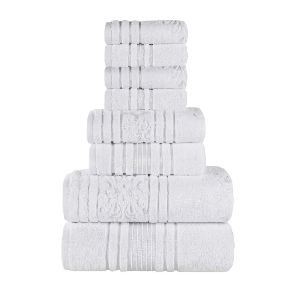 Superior Sadie Zero Twist Cotton Solid And Floral 8 Piece Towel Set - White