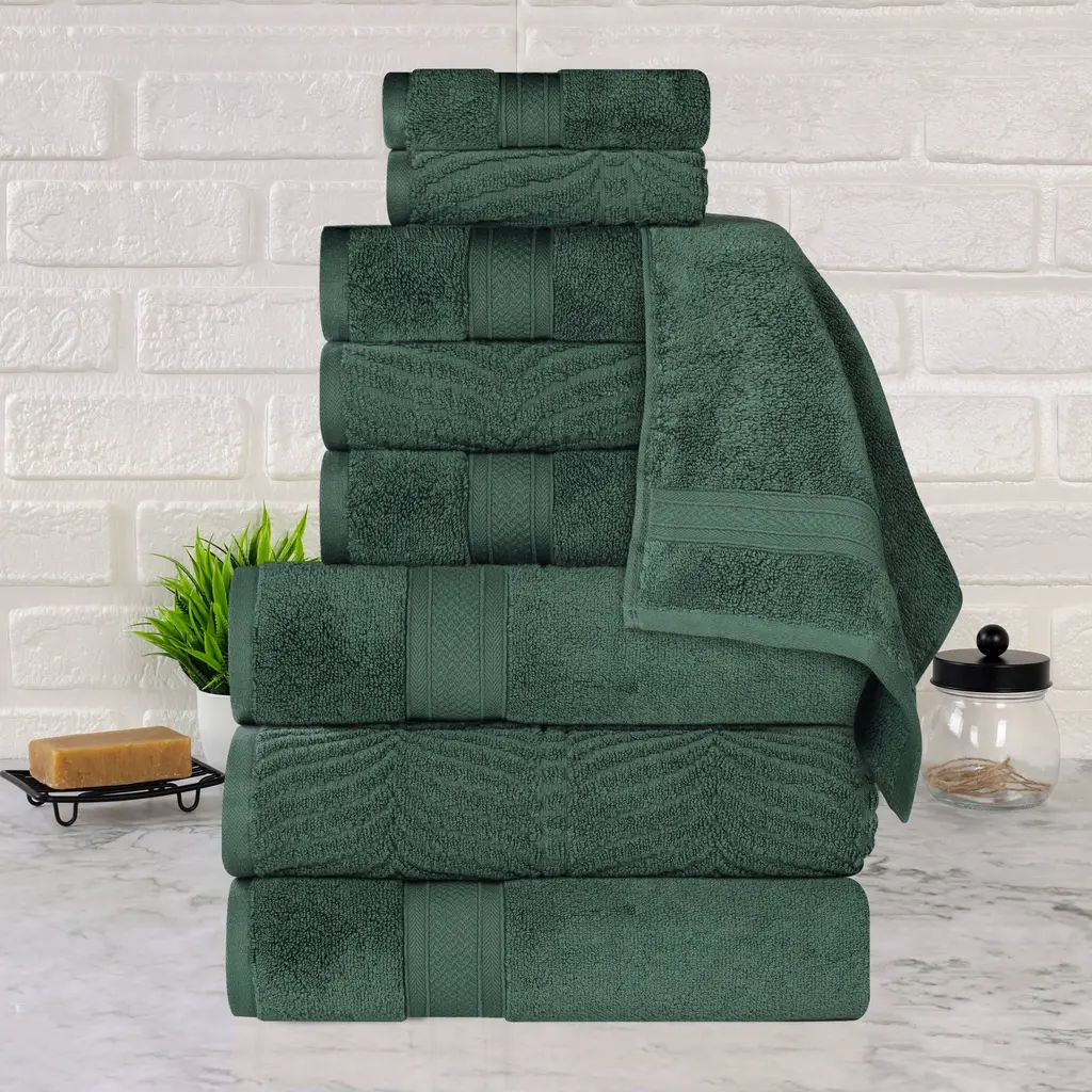 Superior Sadie Zero Twist Cotton Solid And Floral 9 Piece Towel Set - Forest Green