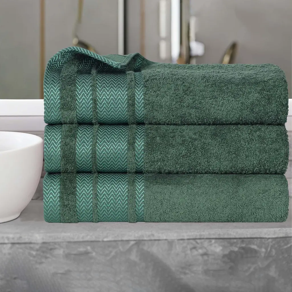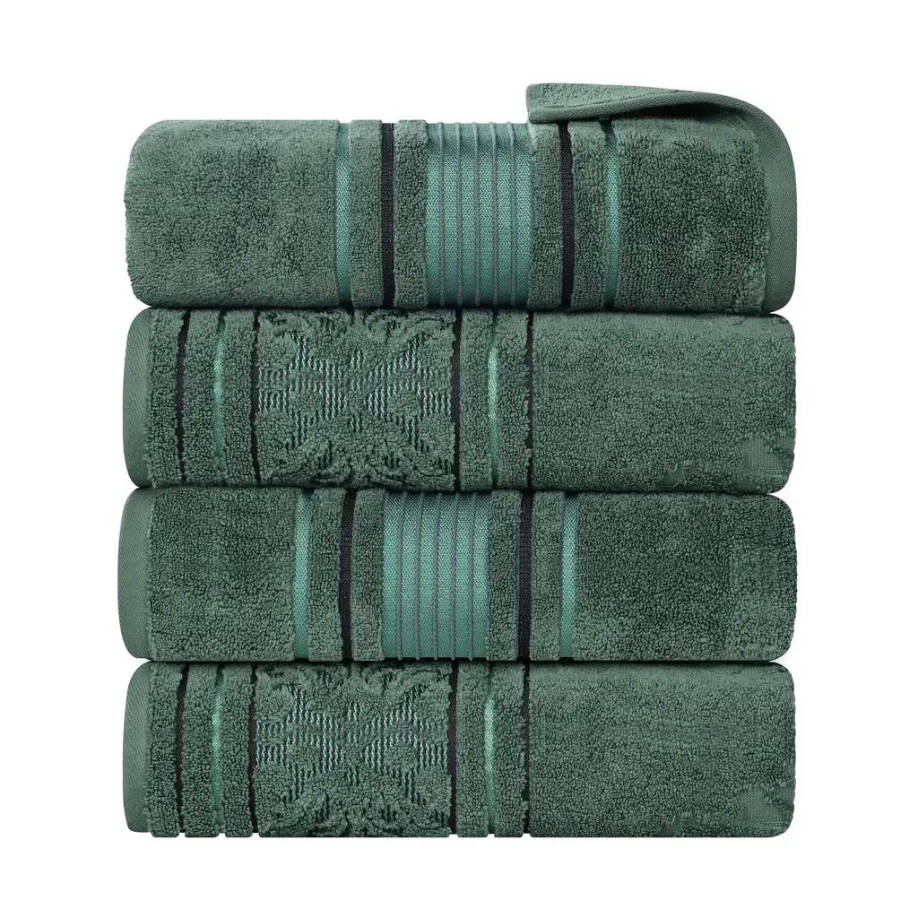 Superior Sadie Zero Twist Cotton Solid And Floral Bath Towel Set Of 4 - Forest Green