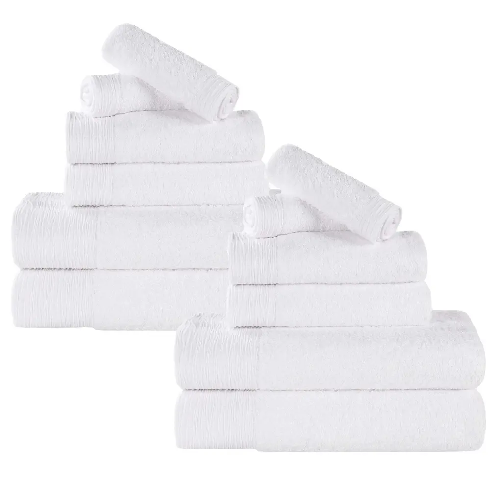 Superior Sierra Rayon From Bamboo Cotton Blend 12 Piece Bathroom Towel Set - White