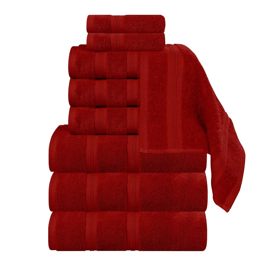 Superior Smart Dry Zero Twist Cotton 9-Piece Assorted Towel Set - Crimson