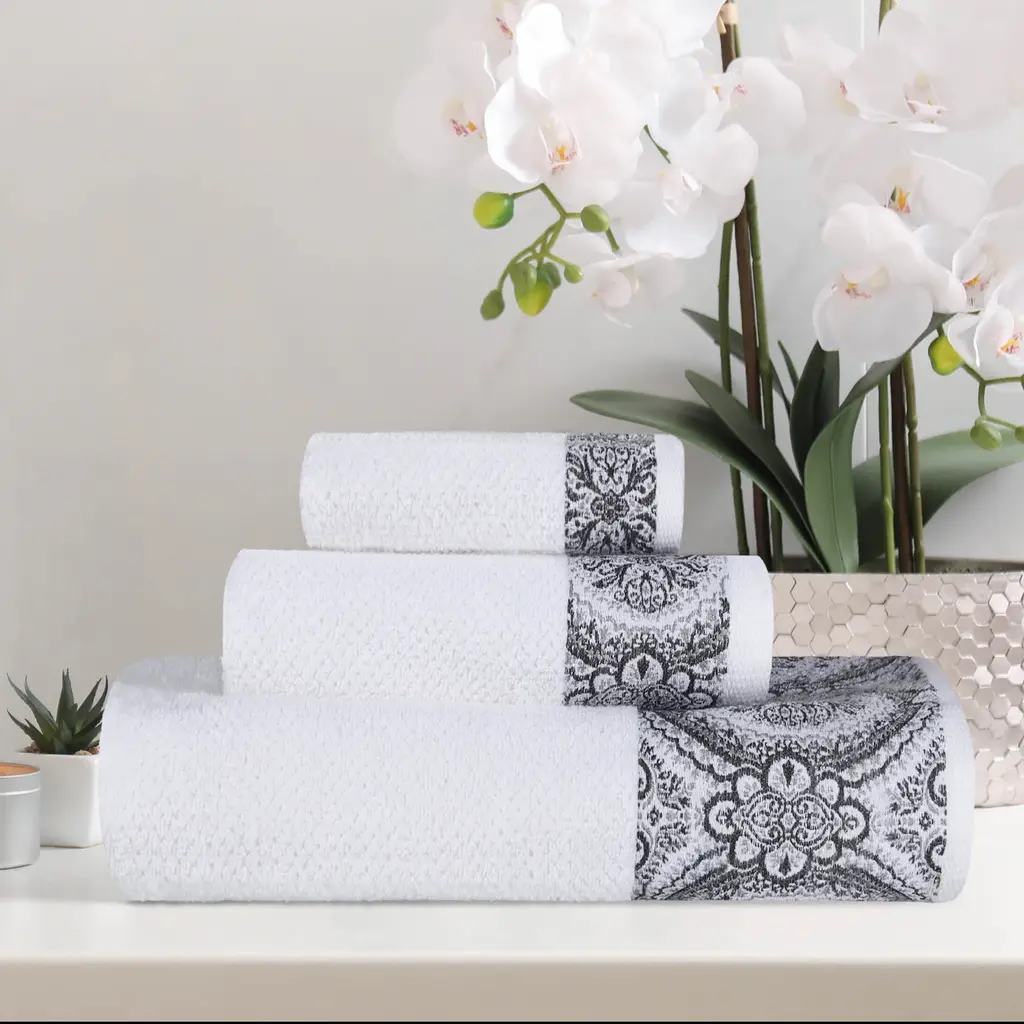 Enjoy a spa-like experience every bath time with this three-piece towel set from Miranda Haus. Crafted from 100 percent cotton, these highly absorbent towels do not tear or pill easily and are soft on your skin. This bath towel, hand towel, and washcloth set is available in a variety of colors to match your style and are machine-washable for hassle-free cleaning. At Superior, we value the needs of our customers and stand behind the integrity of our products, and we firmly believe that no detail is too small to ensure an excellent customer experience.Features: Dimensions: