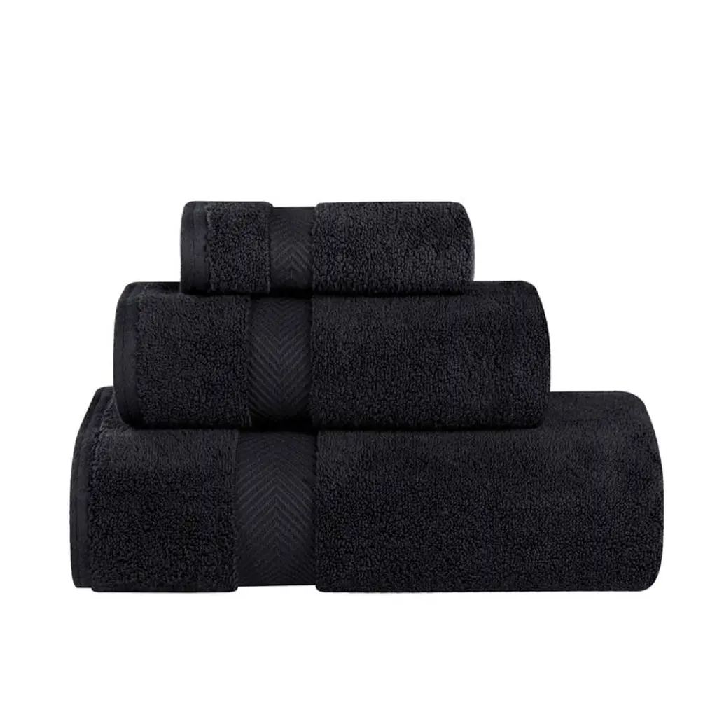 Superior Soft & Absorbent Zero Twist Cotton 3-Piece Towel Set - Black