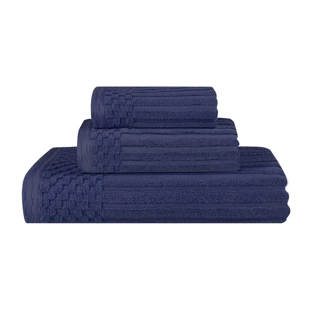 Superior Soho Ribbed Cotton 3-Piece Assorted Towel Set - Navy Blue