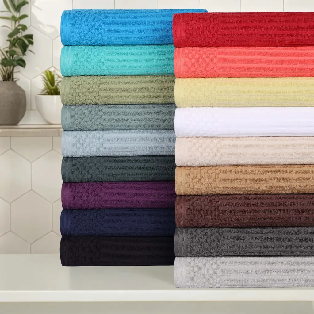 Pamper yourself after a long day with a luxury hotel experience from your own home. The Superior Soho 6 Piece Towel Set is crafted from naturally strong and fluffy cotton with a highly-absorbent design. Each towel is very plush to help you dry quickly as soon as you step out of the shower or bath. This stylish bathroom towel set will tie together modern or contemporary bathroom decor styles. Featuring a classic ribbed pattern with a checkered border, this set will seamlessly tie together the look of your space. These bathroom essentials are available in a variety of solid colors to match your existing bathroom decor.Features: