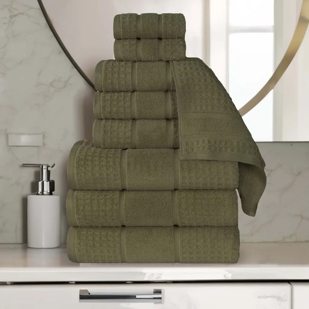 Superior Soho Ribbed Cotton 6-Piece Assorted Towel Set - Forest Green