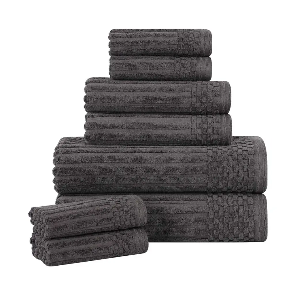 Superior Soho Ribbed Cotton 8-Piece Assorted Towel Set - Charcoal