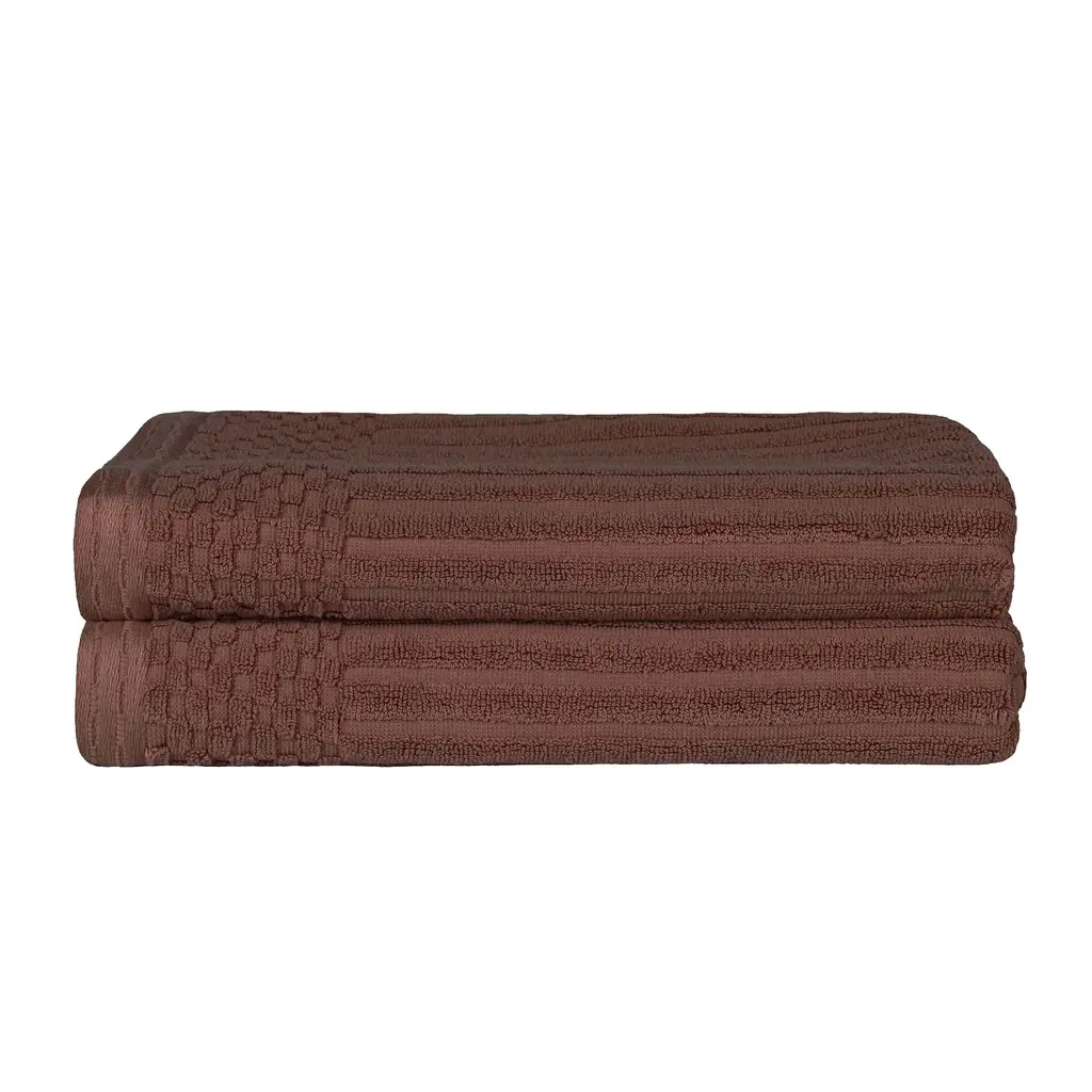 Superior Soho Ribbed Cotton Bath Towel Set - 2Pc Bath Towels - Brown