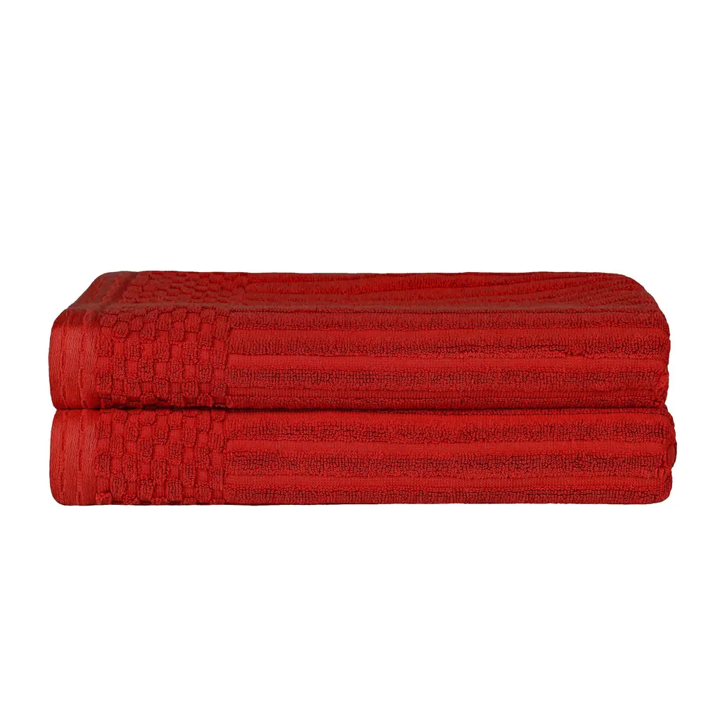 Superior Soho Ribbed Cotton Bath Towel Set - 2Pc Bath Towels - Burgundy