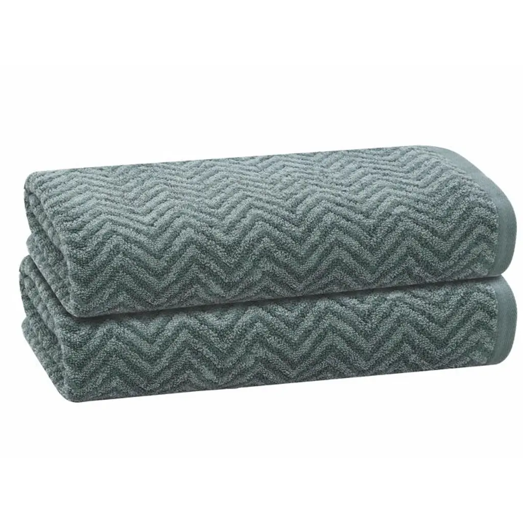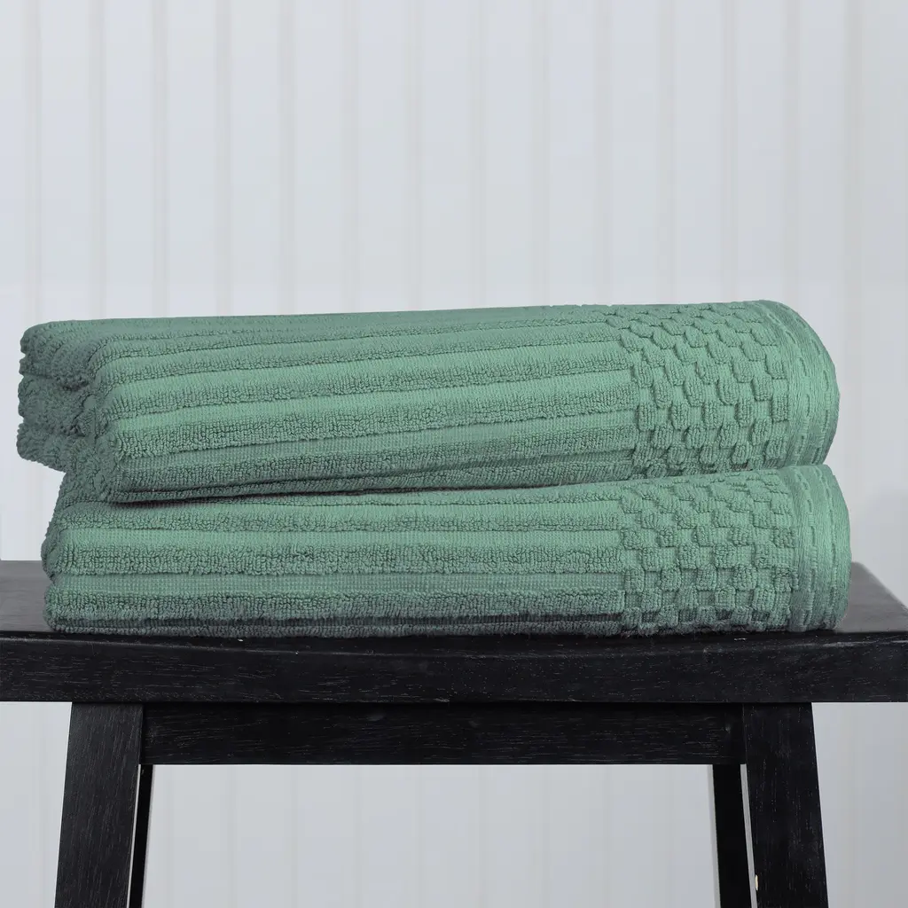 Superior Soho Ribbed Cotton Bath Towel Set - 2Pc Bath Towels - Forest Green