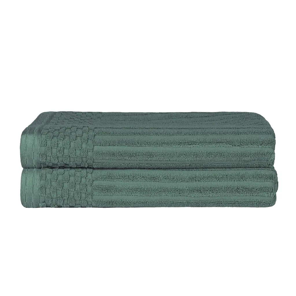 Superior Soho Ribbed Cotton Bath Towel Set - 2Pc Bath Towels - Green