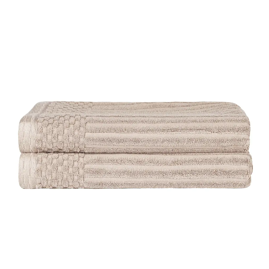 Superior Soho Ribbed Cotton Bath Towel Set - 2Pc Bath Towels - Ivory