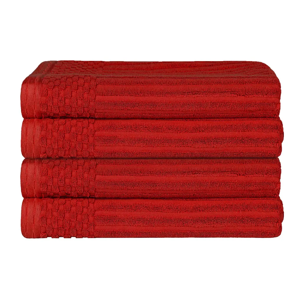 Superior Soho Ribbed Cotton Bath Towel Set Of 4 - Burgundy