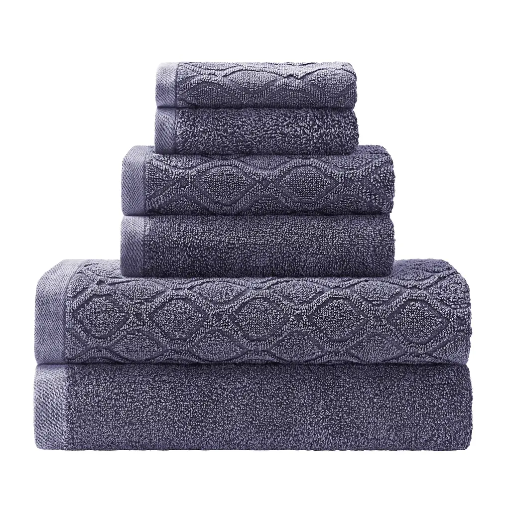 Update your bathroom towels with the luxurious comfort of the Superior Soho Bath Towel Set. Crafted from naturally strong and fluffy cotton, these towels have a highly-absorbent design. Each towel is very plush to help you dry quickly as soon as you step out of the shower or bath. This stylish bathroom towel set will tie together Modern, Casual, or Contemporary bathroom decor styles. Featuring a classic ribbed pattern with a checkered border, this set will seamlessly tie together the look of your space.Features: