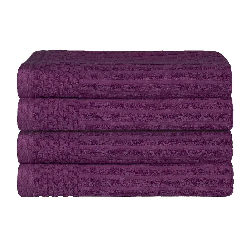 Superior Soho Ribbed Cotton Bath Towel Set Of 4 - Purple