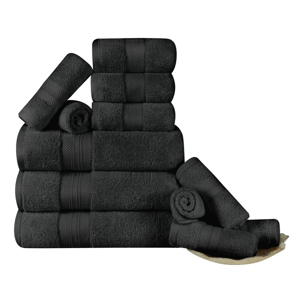 Superior Turkish Cotton 12 Piece Solid Plush Heavyweight Towel Set - Black
