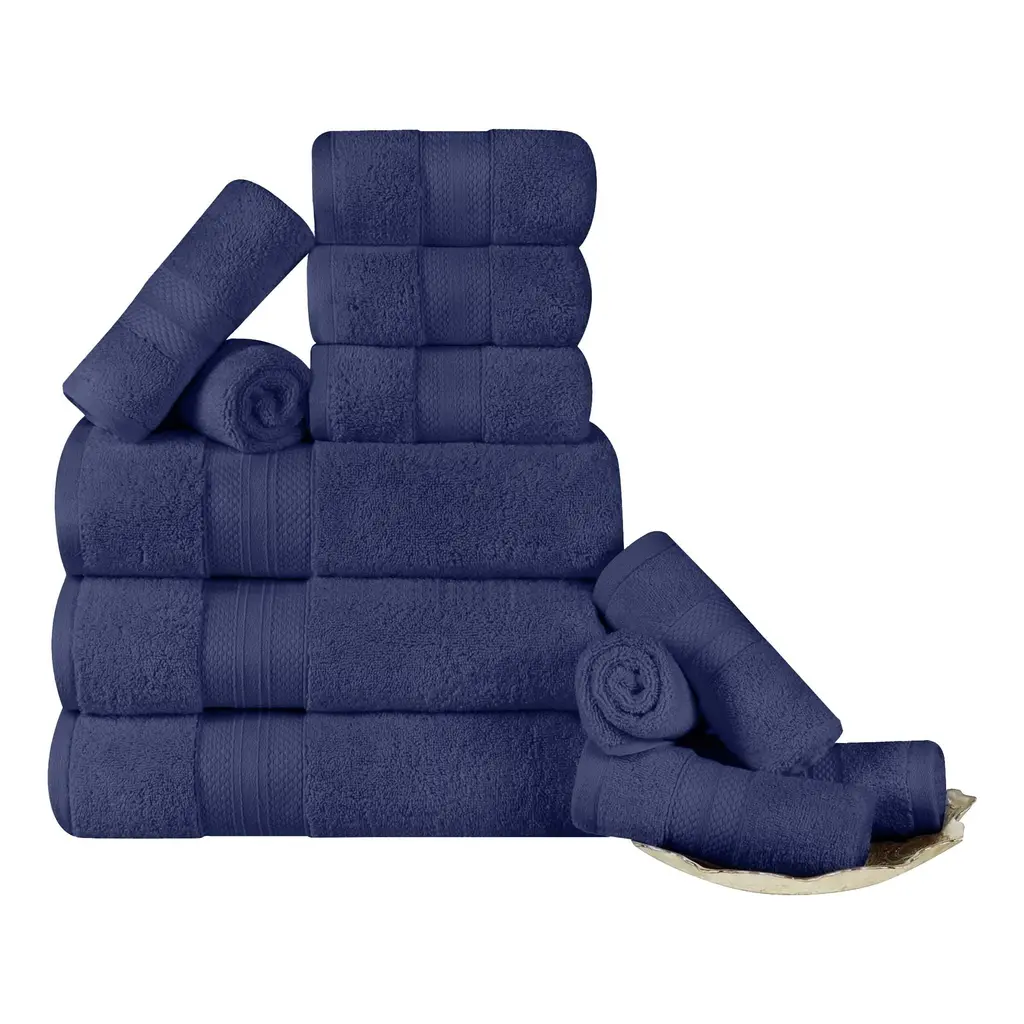 Superior Turkish Cotton 12 Piece Solid Plush Heavyweight Towel Set - Crown Blue