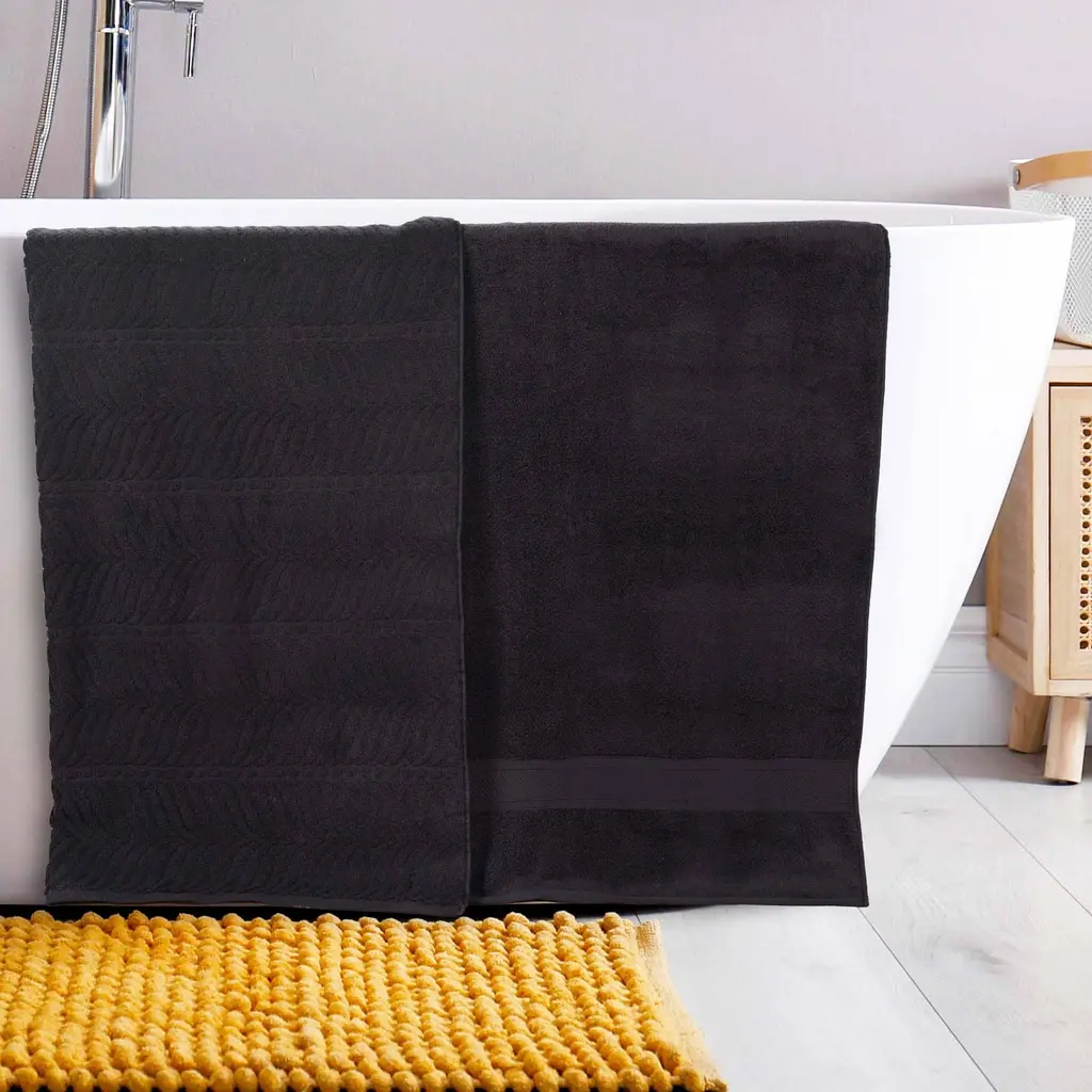 Superior Ultra-Soft Cotton Solid Medium Weight Bath Towel Set Of 2 - Black