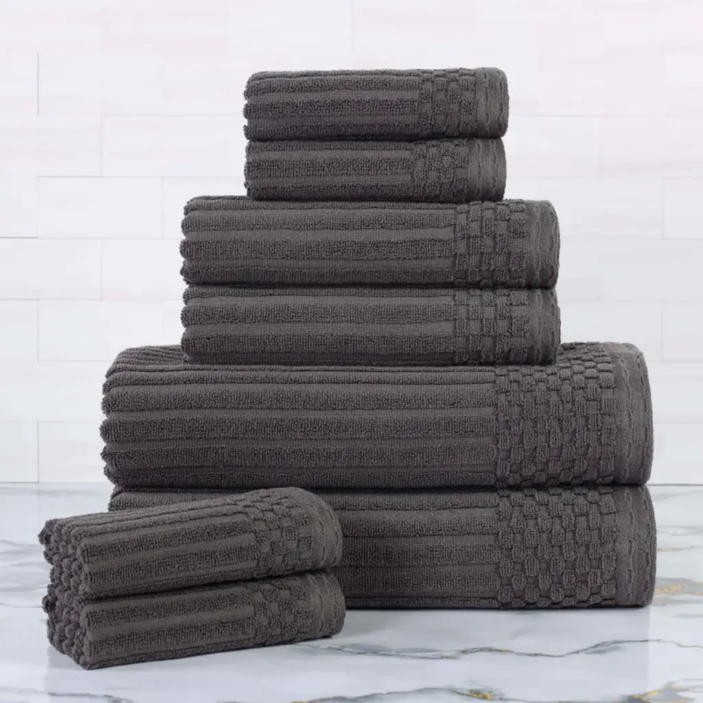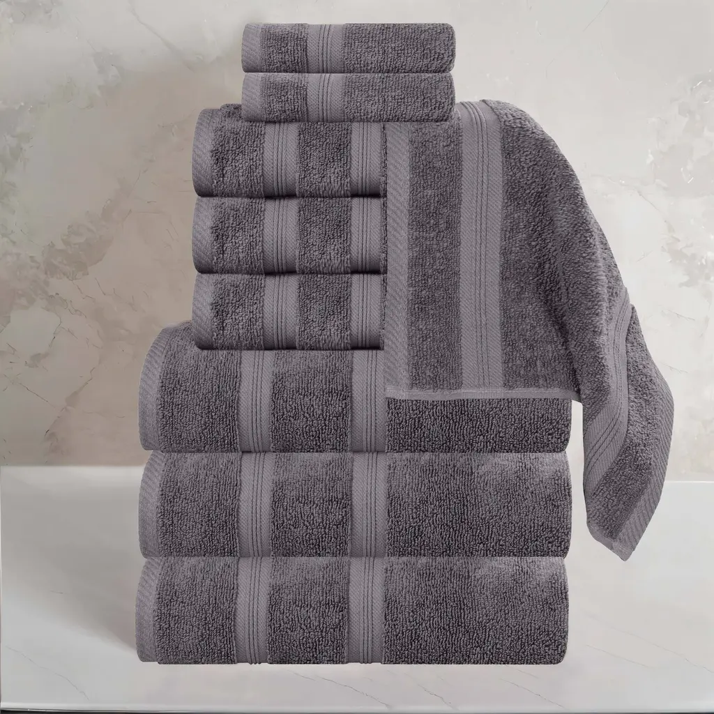 Superior Ultra-Soft Cotton Solid Quick-Drying 12 Piece Towel Set - Charcoal