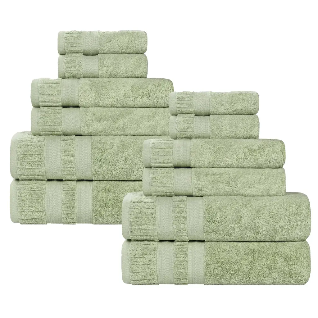 Superior Venice Zero Twist Cotton Medium Weight Absorbent 12 Piece Towel Set - Green