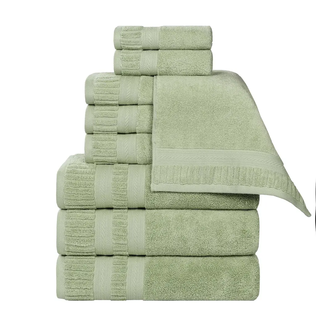 Superior Venice Zero Twist Cotton Medium Weight Absorbent 9 Piece Towel Set - Green
