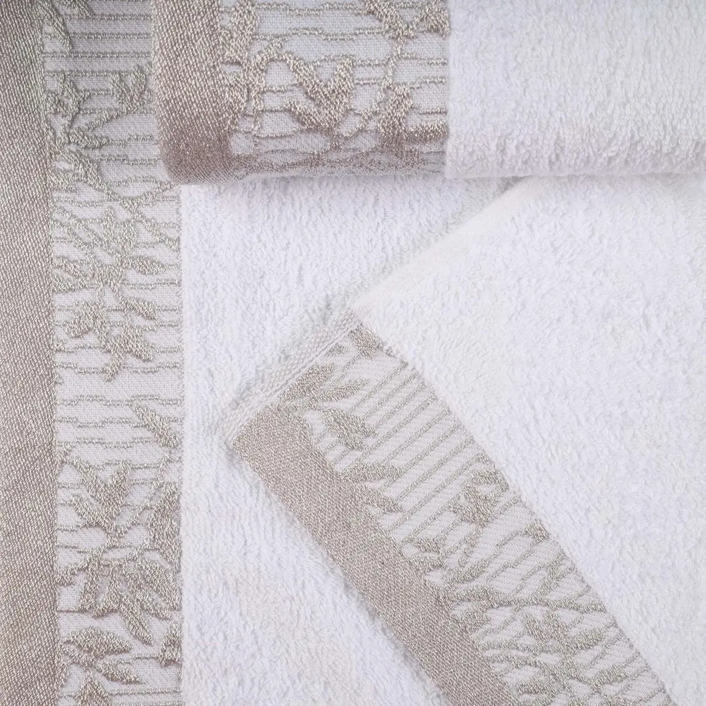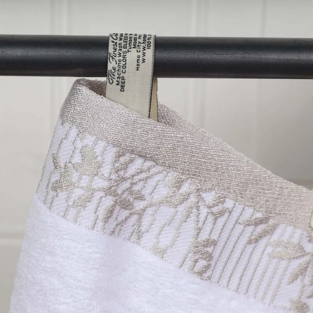 Superior Wisteria Cotton Floral Jacquard Border Bath Towel Set - White