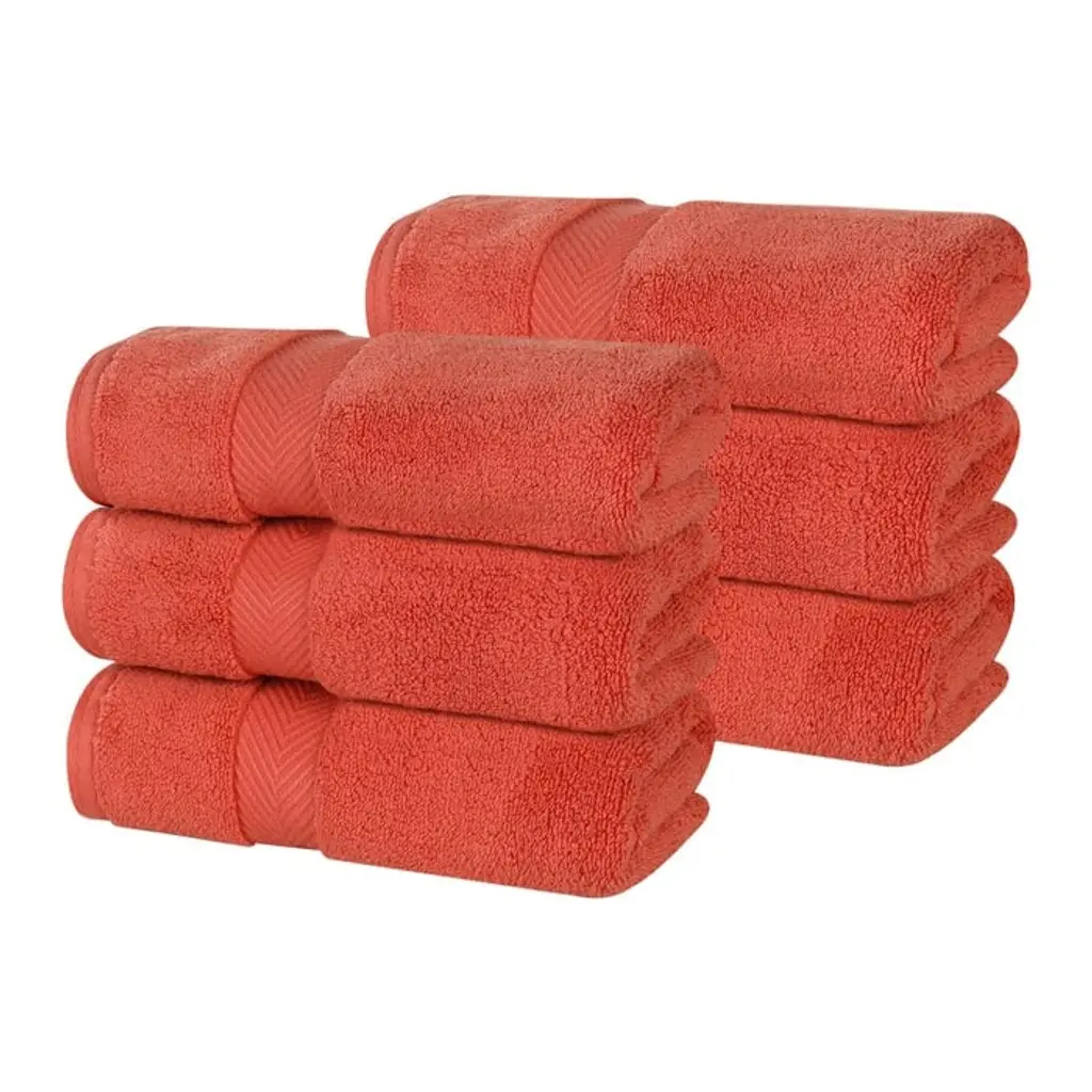 Superior Zero Twist Cotton Solid Soft Absorbent Hand Towel Set Of 6 - Brick