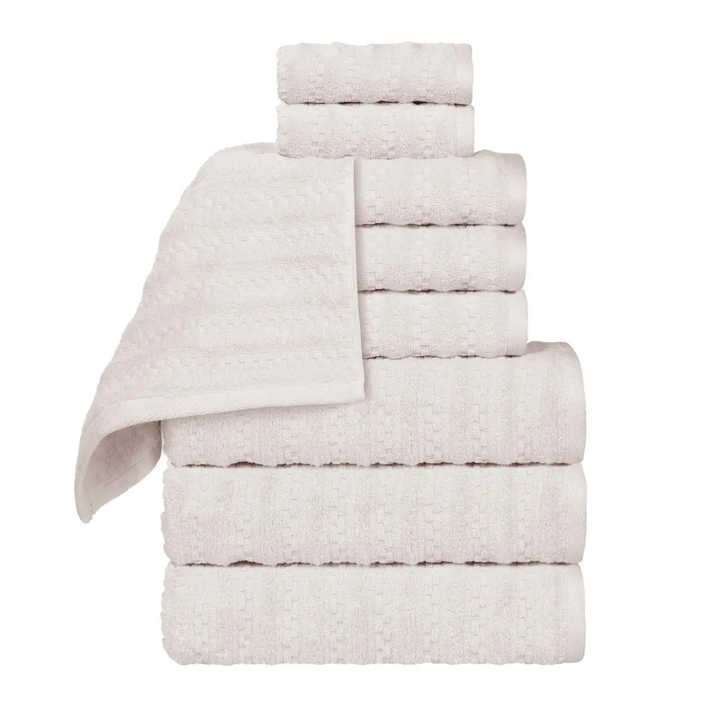 Transform your bathroom into a personal oasis of relaxation with the Zuma 9 Piece Towel Set by Superior. These cotton towels, meticulously crafted with a zero-twist weave, offer a luxuriously soft and gentle embrace that promotes a sense of calm and well-being. The exceptional absorbency and quick-drying capabilities enhance your self-care rituals, ensuring a fresh and inviting experience every time. Indulge in the ultimate pampering and elevate your daily routine with these spa-quality towels. Features: Dimensions: