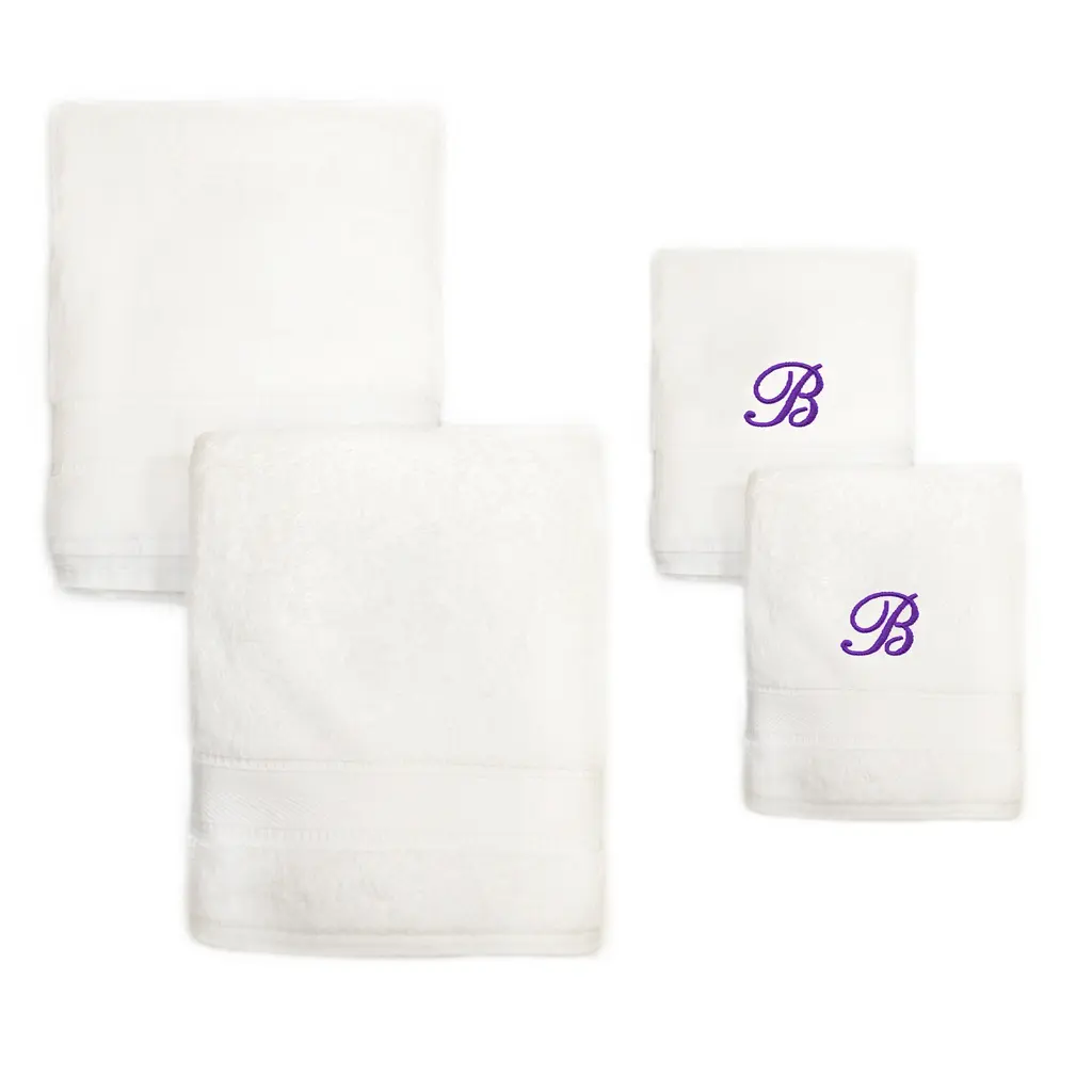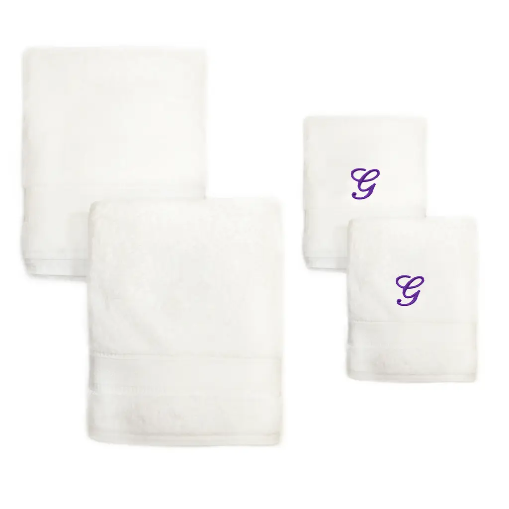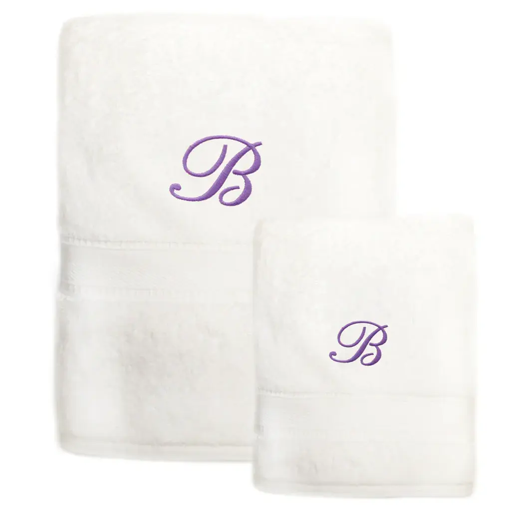 Sweet Kids 2-Piece White Turkish Cotton Bath And Hand Towel Set With Lavender Purple Monogrammed Initial - White/purple D