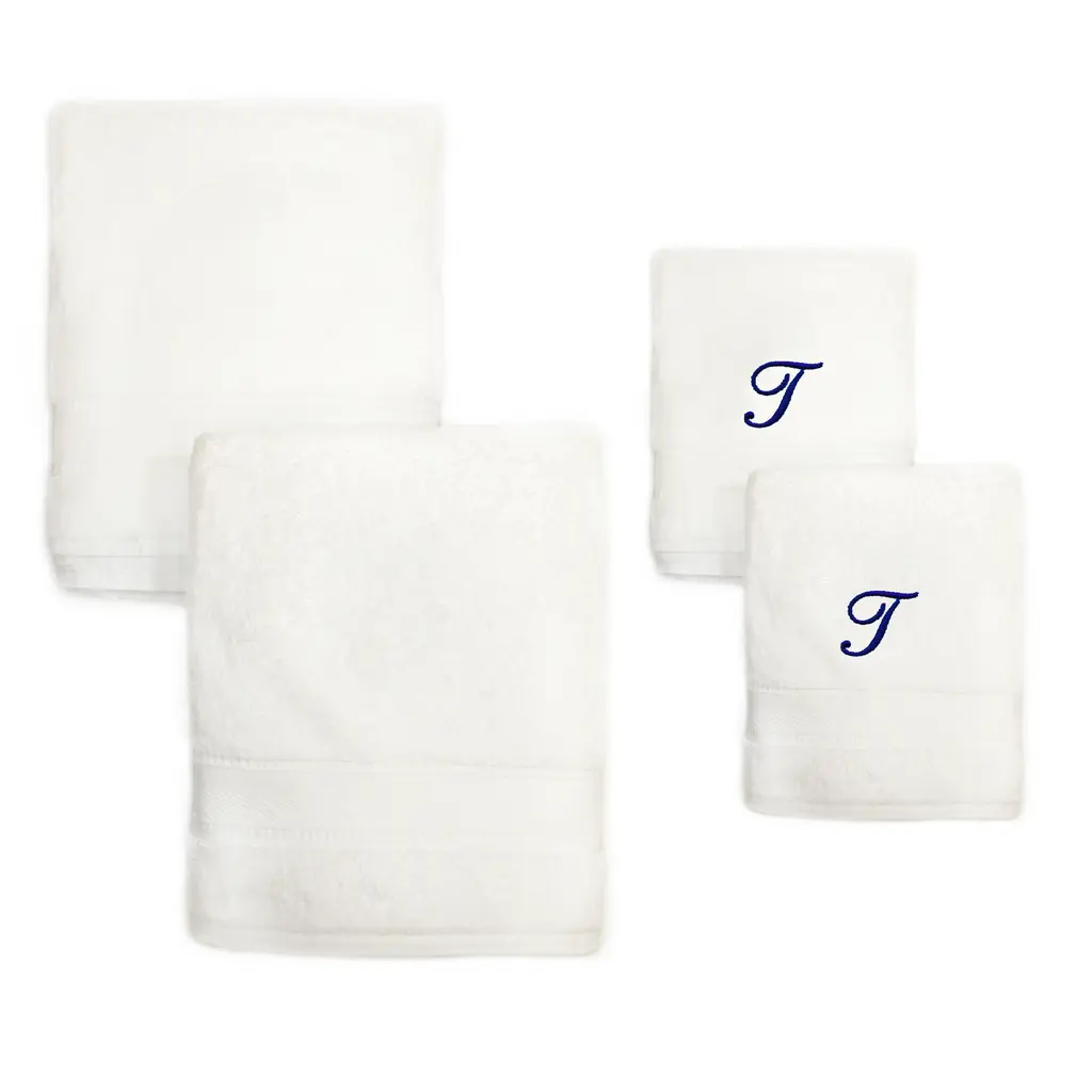 Sweet Kids 2-Piece White Turkish Cotton Bath And Hand Towel Set With Royal Blue Monogrammed Initial - F - White