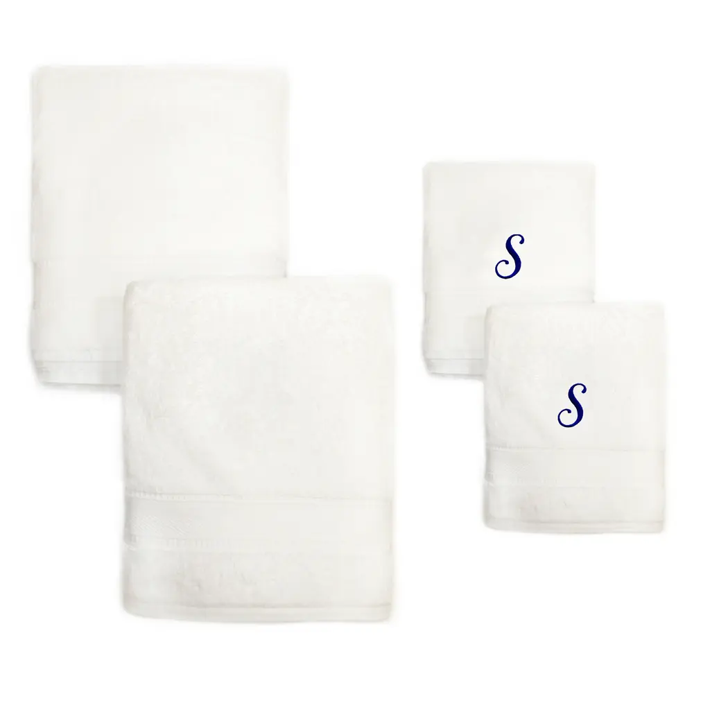 Sweet Kids bath and hand towel set is made from high end, white Turkish cotton with a royal blue block letter embroidered initial of your choice monogrammed on each towel. These 700 gram towels are made especially for kids and become softer and more absorbent with every wash. Your child will love a personalized towel of their very own.Set includes: One (1) hand towel and one (1) bath towelSoft, thick and very absorbentLong-lasting towels designed for heavy useBecome softer with each washWill not pill or shedPattern: White embroidered with the initial of your choice in blue block letteringType of cotton: TurkishConstruction: Looped terryclothMaterials: 100-percent Turkish cottonCare instructions: Machine washableMade in TurkeyHand towel dimensions: 16 inches x 30 inchesBath towel dimensions: 27 inches x 54 inches Product Features: Monogrammed Material: Turkish Cotton Pattern: Embroidered, Solid Color, Kids Set Include: 2 Piece Care Instruction: Machine Wash Towel: Towel Sets, Bath Towels, Hand Towels Color: Blue, White