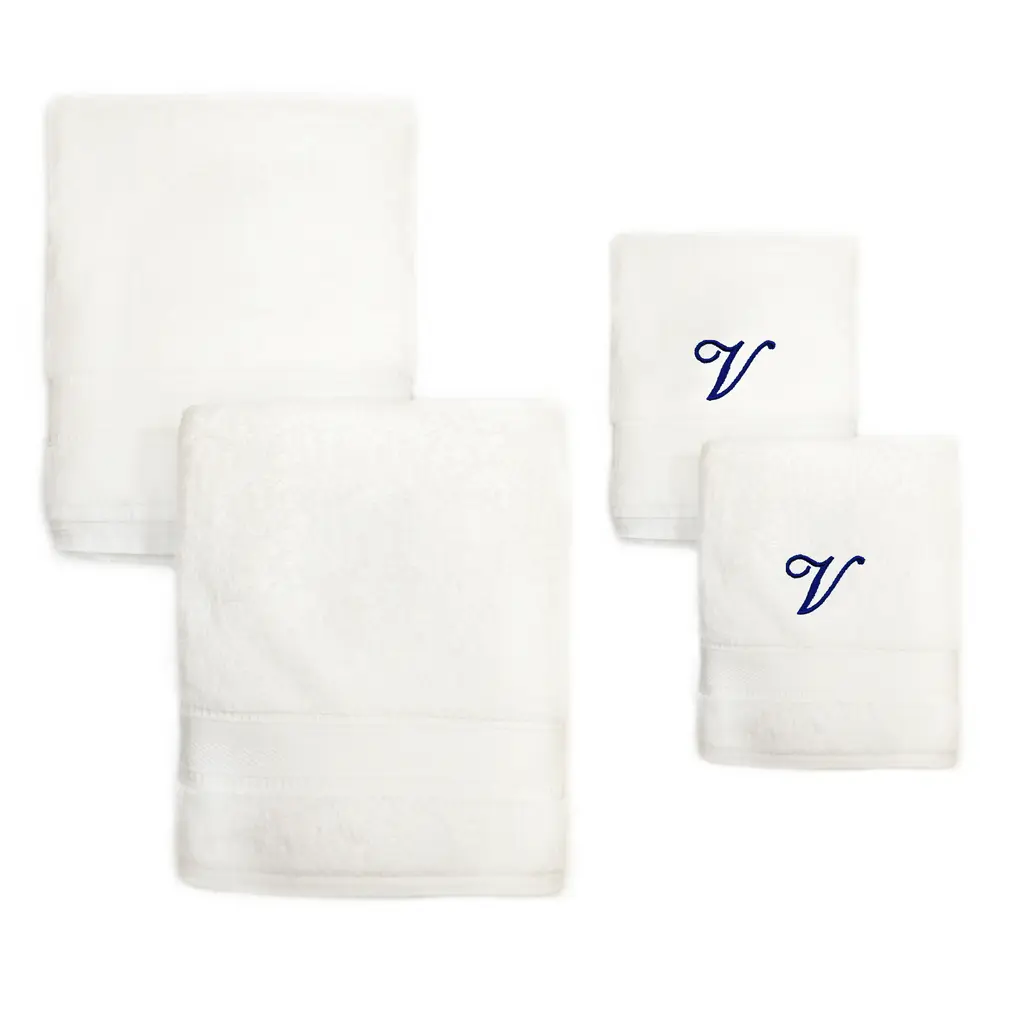 Sweet Kids 2-Piece White Turkish Cotton Bath And Hand Towel Set With Royal Blue Monogrammed Initial - G - White