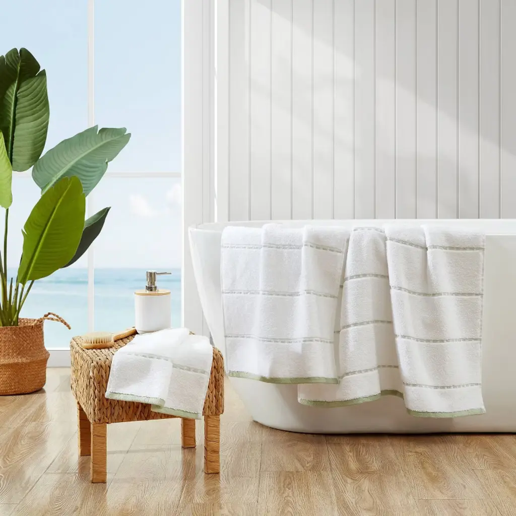 Wrap yourself in tropical comfort with the Tommy Bahama Ridely 3-piece bath towel set. Available in bathroom friendly color palette, our towels will coordinate with any bathroom décor. Constructed in high quality cotton, this perfect towel set will seamlessly bring a pop of color and style to your home. These towels have a substantial 600 gsm, durable and quick drying zero twist construction. The zero-twist construction allows for these fluffy towels to be soft on the skin. Fibers stay durable after many washes. Upgrade your entire bathroom with our bundle, which comes with 1 bath towel, 1 hand towel and 1 washcloth. Machine washable for easy care.